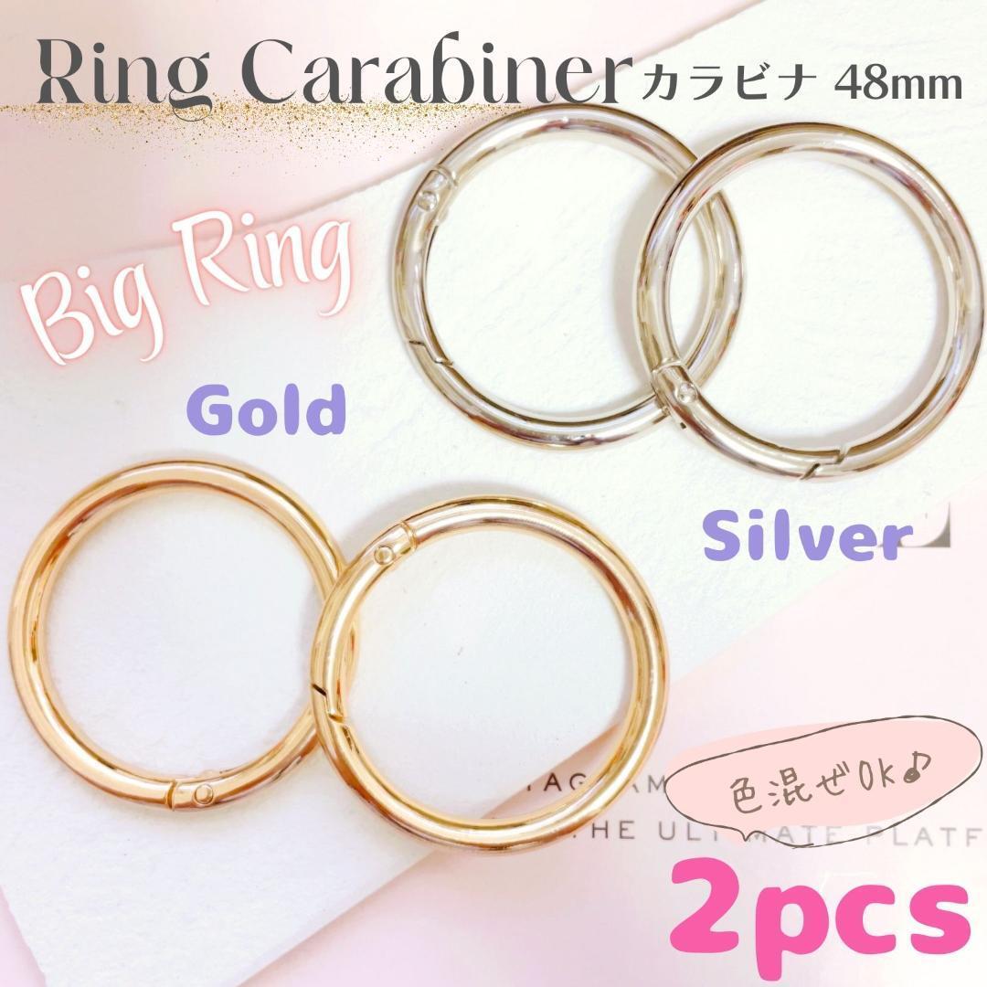 送料無料★akeeeeey★キーリング カラビナ ☆ ラウンド 丸 48mm 2個 キーホルダー金具_B1| リングカラビナ ワンタッチ開閉 金具 收藏