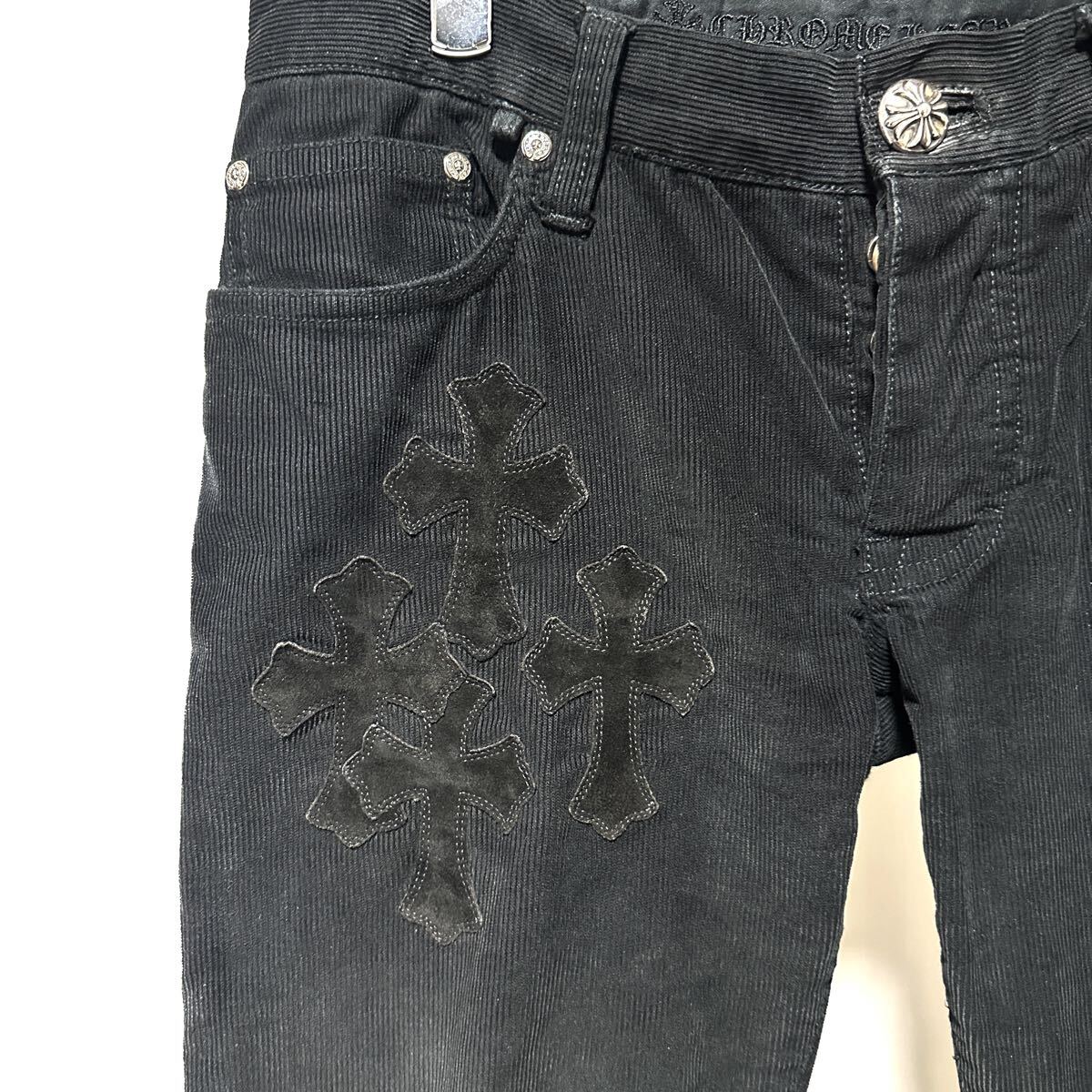 超希少◇Chrome Hearts クロムハーツ コーデュロイパンツ クロスパッチ セメタリークロス スウェード デニムパンツ JVPタグ ブラック 30 收藏