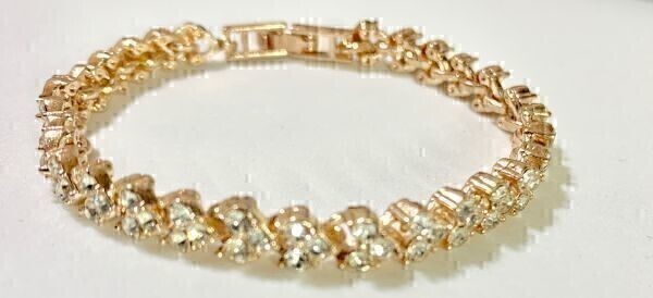 【Premio Fortuna】水晶のハート形ラインストーンブレスレット ゴールドフィルド 内径約17センチ Qh8mxByz 193 收藏