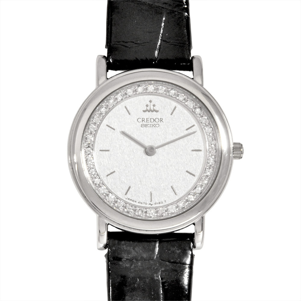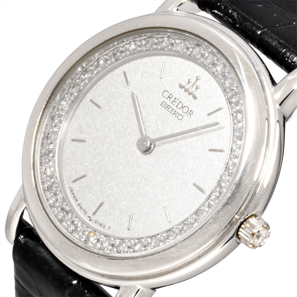 セイコー SEIKO 4N70-0150 クレドール 腕時計 クォーツ シルバー文字盤 Pt900 ダイヤ プラチナ 無垢 レディース 收藏