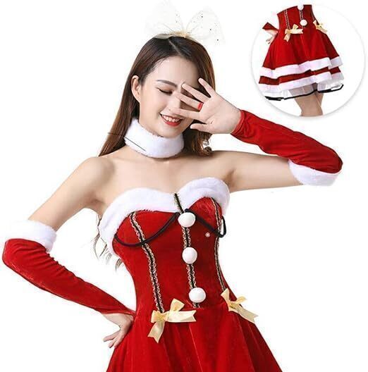 送料無料 サンタ クリスマス 5点セット 仮装 衣装 コスプレ 大人 コスチューム プリンセスワンピース 新品 未使用 收藏