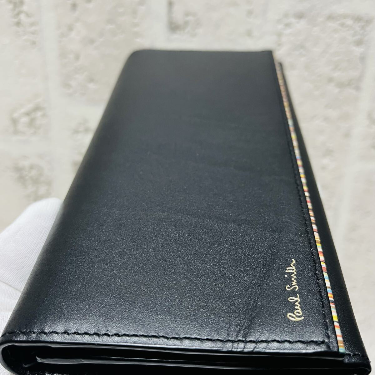 美品 新作 Paul Smith ポールスミス 長財布 ストライプポイント2 マルチストライプ ロングウォレット ブラック 本革 紳士 メンズ 9271 收藏