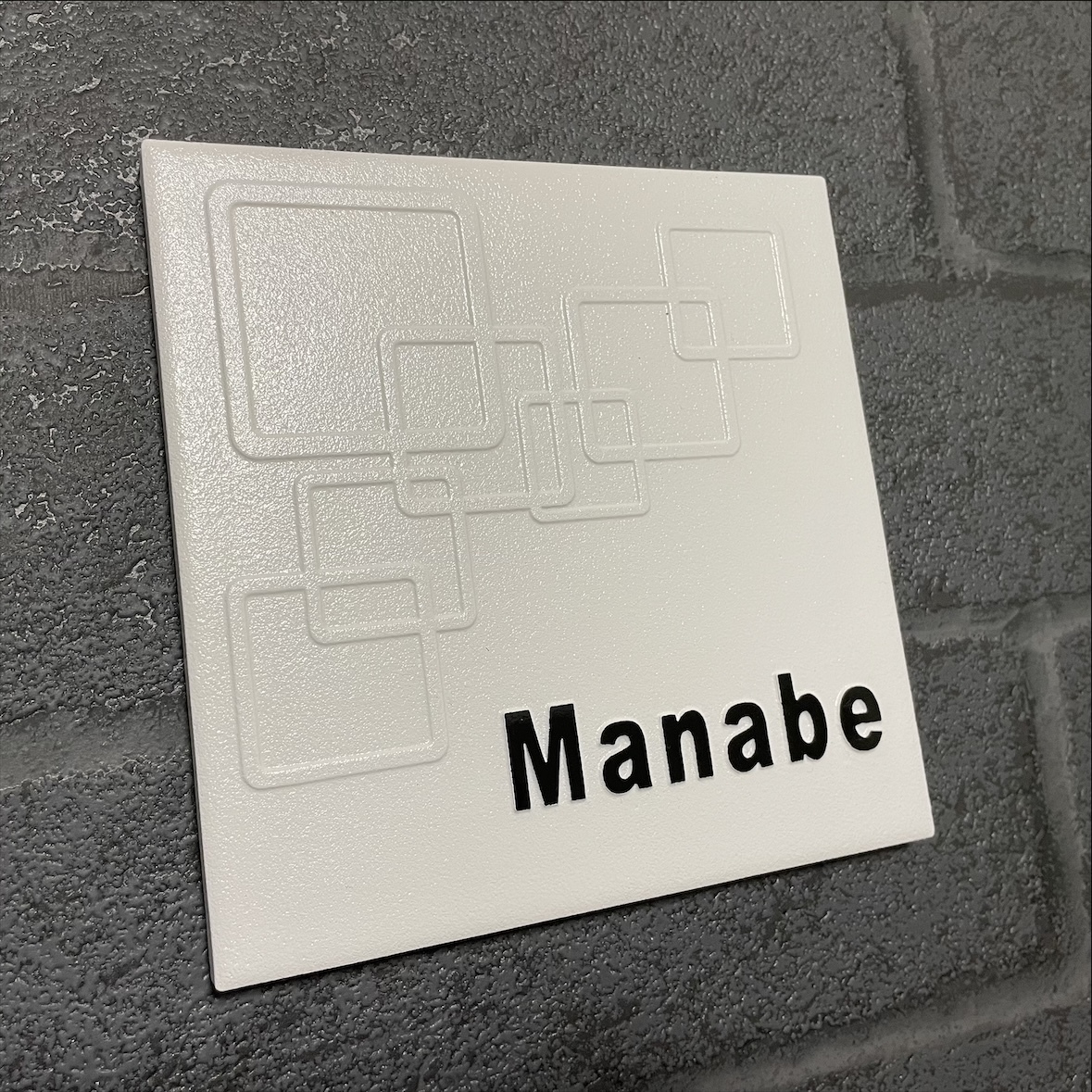 表札 見本品処分「Manabe」150角タイル ネームプレート 二層浮き彫り表札 風水 收藏