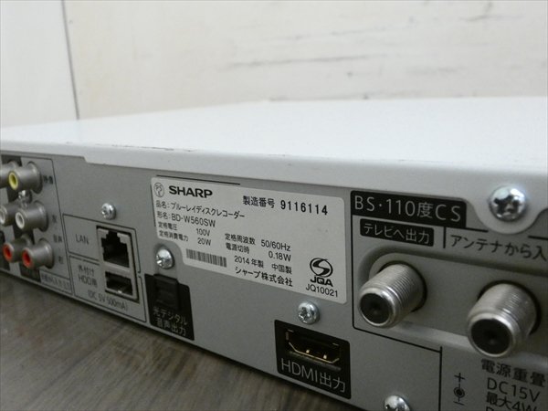 500GB☆14年☆シャープ/SHARP/AQUOS☆HDD/BDレコーダー☆BD-W560SW☆リモコン付☆2番組同時録画☆3D対応機 管SA9100 收藏