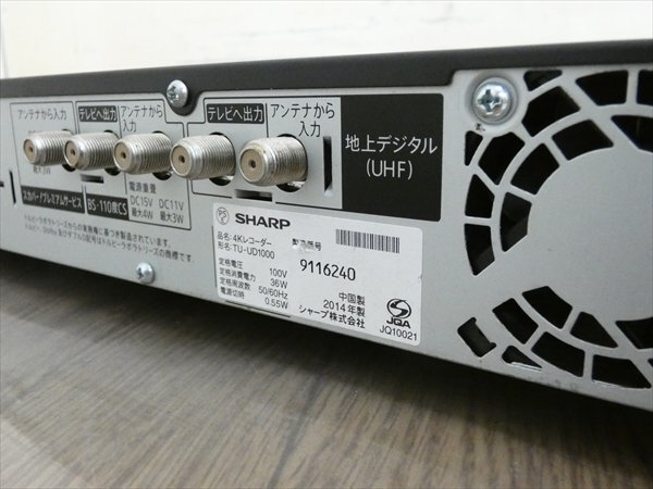 1TB☆14年☆シャープ/SHARP/AQUOS☆HDDレコーダー☆TU-UD1000☆リモコン付☆2番組同時録画☆3D対応機 管SA9102 收藏