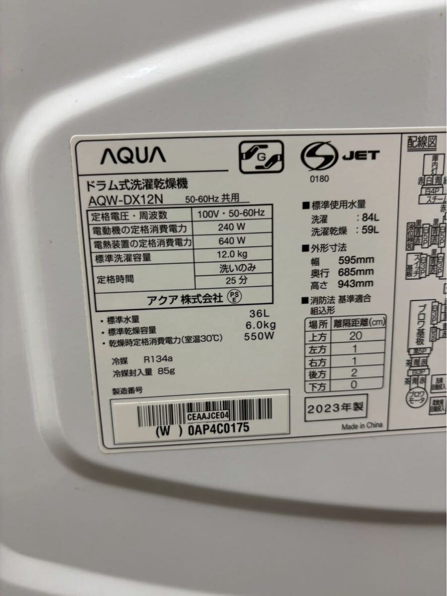 AQUAドラム式洗濯機 AQW-DX12N 2023年製 收藏