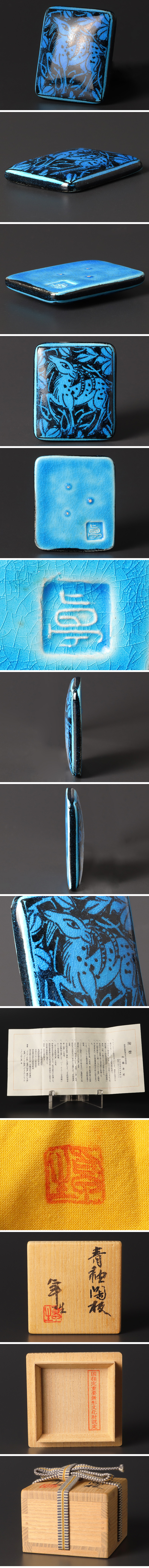 | 【古美味】人間国宝 加藤卓男 青釉 陶板 茶道具 保証品 |