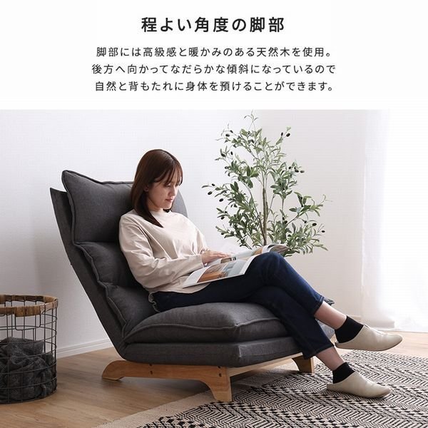 ソファ★新品/脚付きリクライニングローソファ 1人掛け/ハイバック ワイド 天然木脚 日本製 完成品/コーデュロイ グレー/a3 收藏