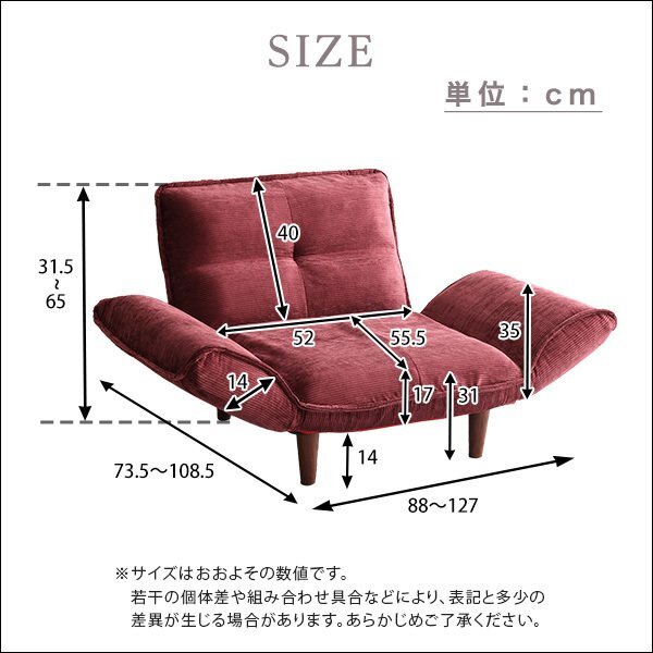 | 【ポイント】 コーデュロイ生地で肌触りが気持ちい1人掛けコンパクトソファです。 背もたれ、肘置き部分は14段階リクライニング可能なのでベストな位置に調整できます。 ポケットコイル搭載で耐久性GOOD! |