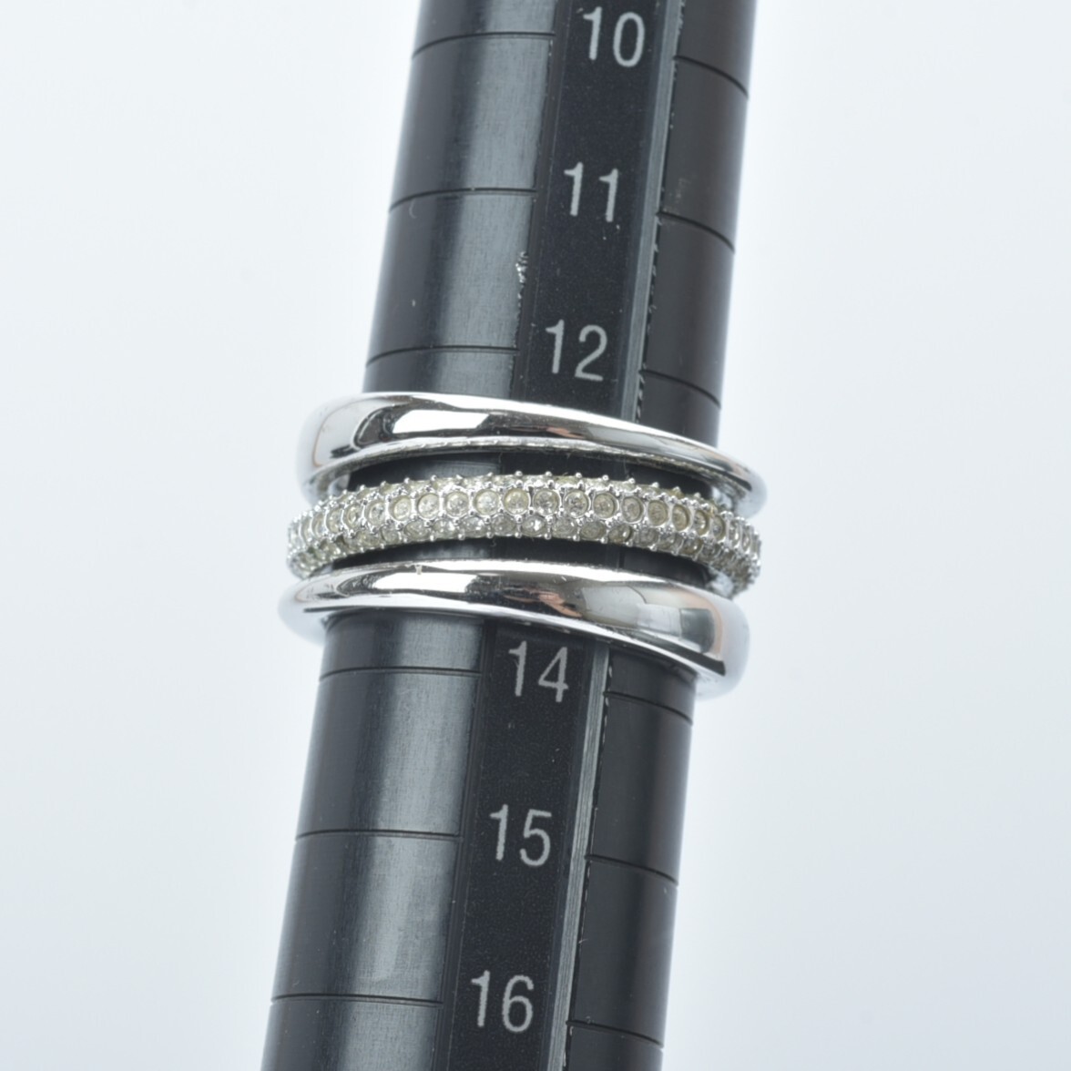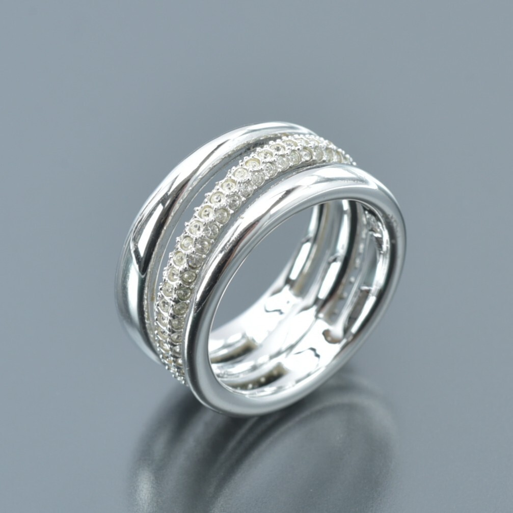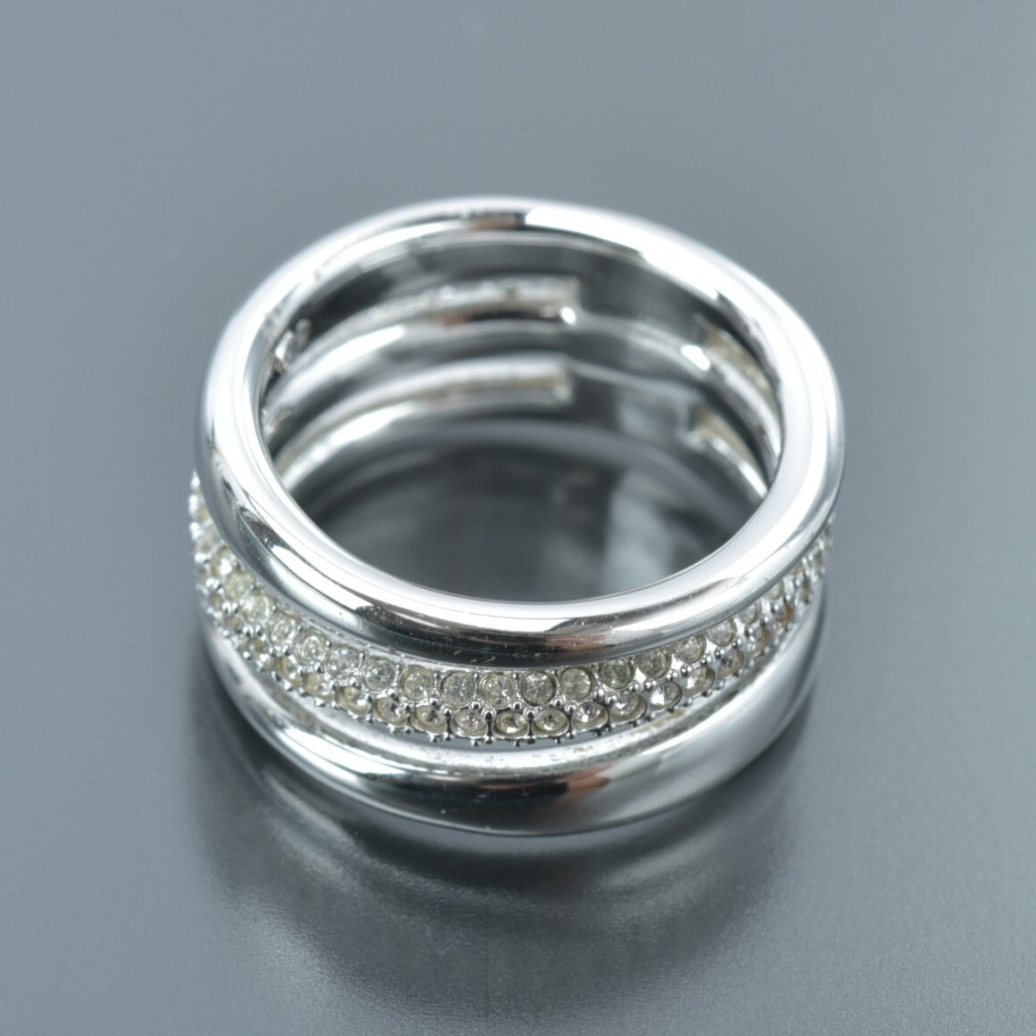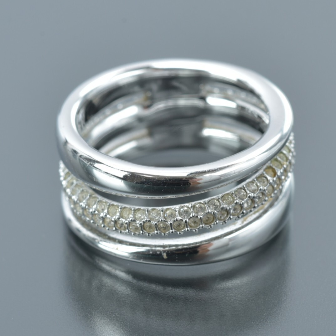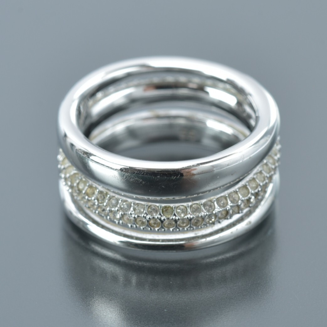 美品 スワロフスキー 3連 リング 13号/55/17mm ラインストーン シルバー クリスタル 指輪 SWAROVSKI ジュエリー アクセサリー #N※C752 收藏
