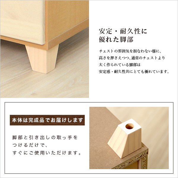 | 【ポイント】 ①美しい天然木を使用したチェストです。 ②スライドレールで楽々取り出し♪ ③届いてすぐ使える完成品です。 ④生産国は安心の日本製です。 ⑤シリーズで揃えればお部屋を明るくしてくれます。 |