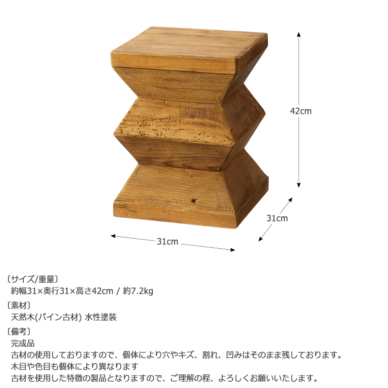 古材を使用した特徴の製品となりますので、ご理解の程、よろしくお願いいたします。
