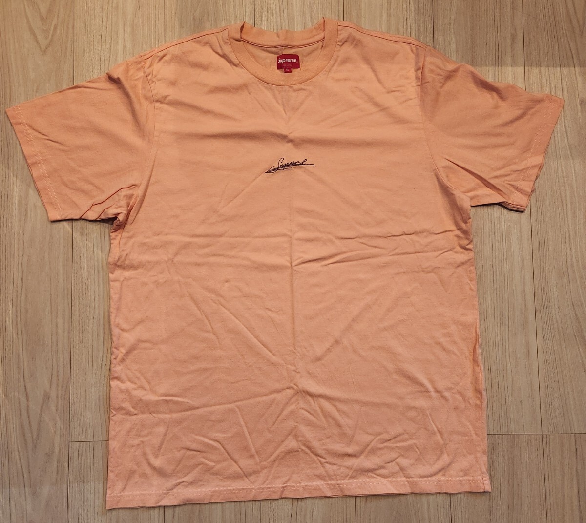 サイズXL Supreme シュプリーム シグネイチャー 筆記体 Tシャツ サーモンピンク LOGO ロゴ 赤 黒 tee 收藏