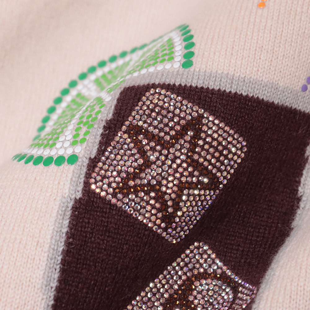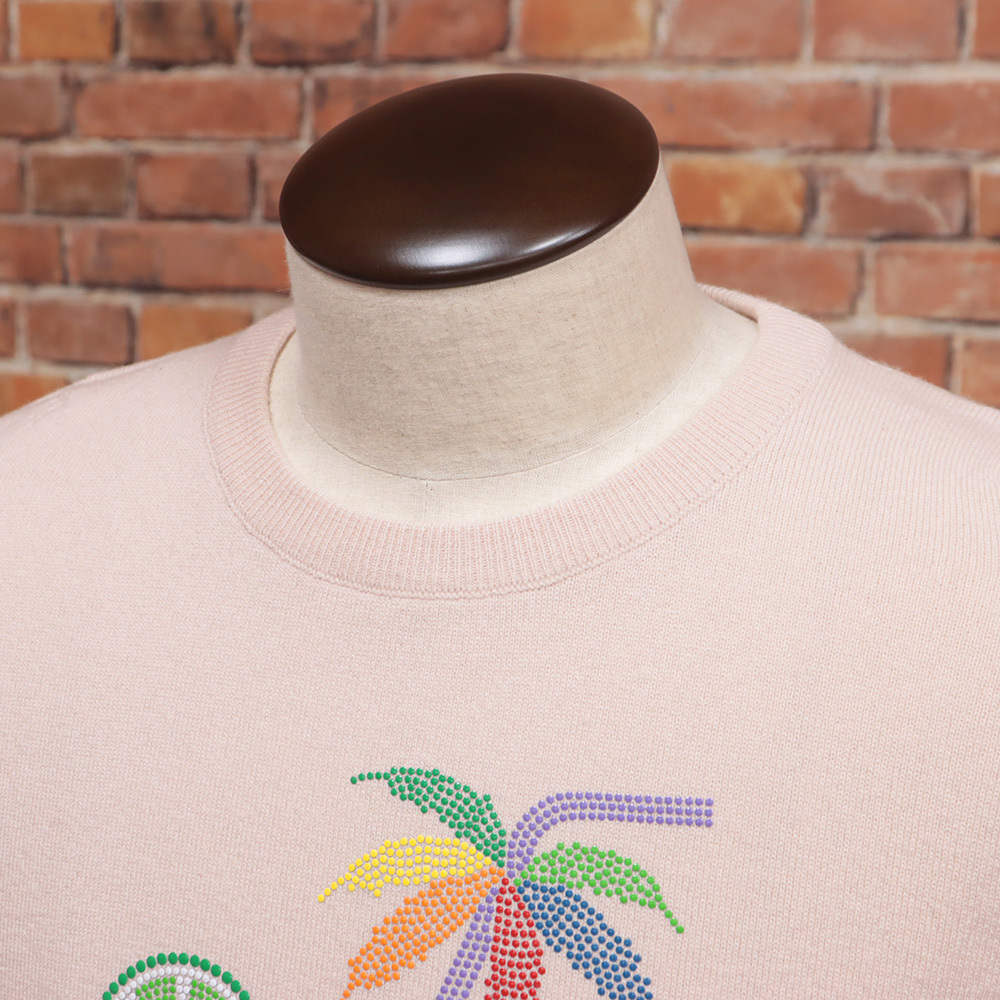 秋冬/lucien pellat-finet/Mサイズ/丸首ニット ROM5709 極上カシミヤ100% ヤシの木 ラインストーン ペラフィネ 新品/ピンク/md138/ 收藏