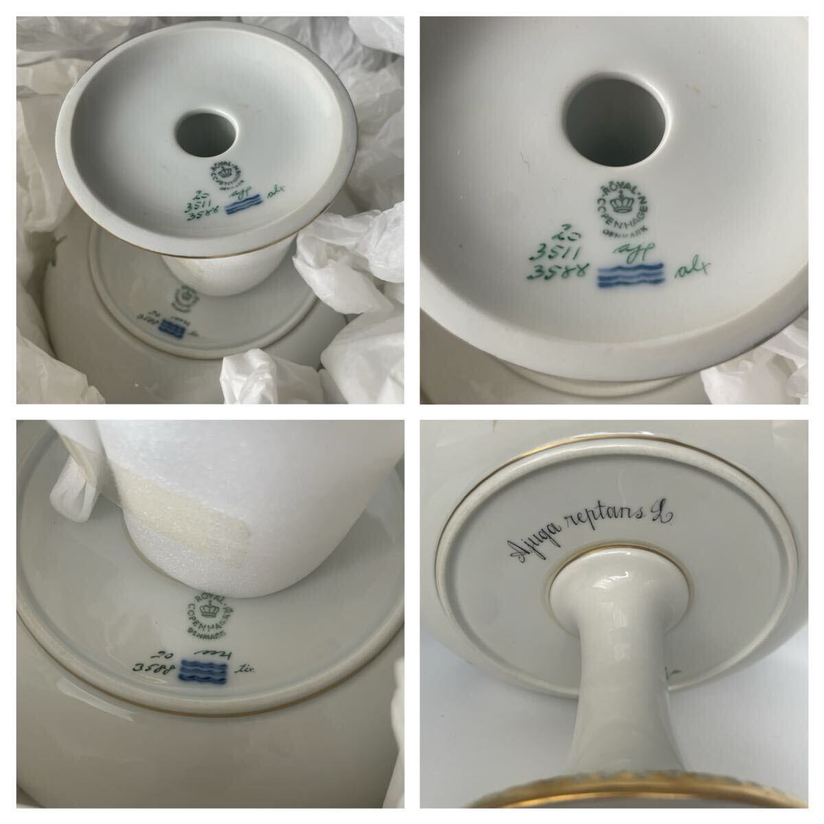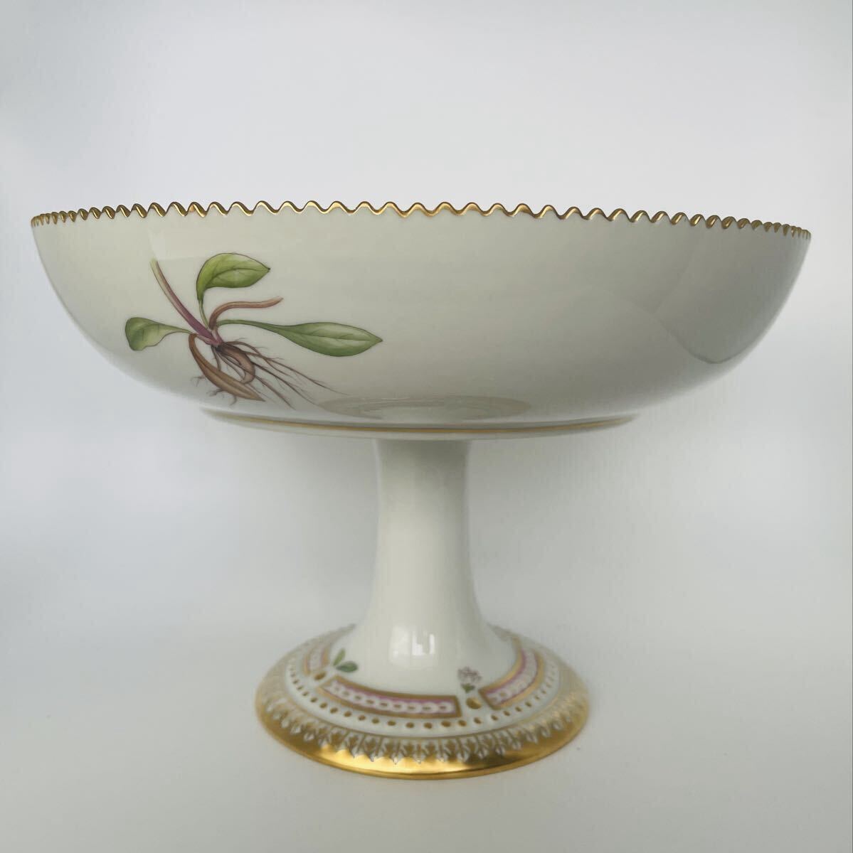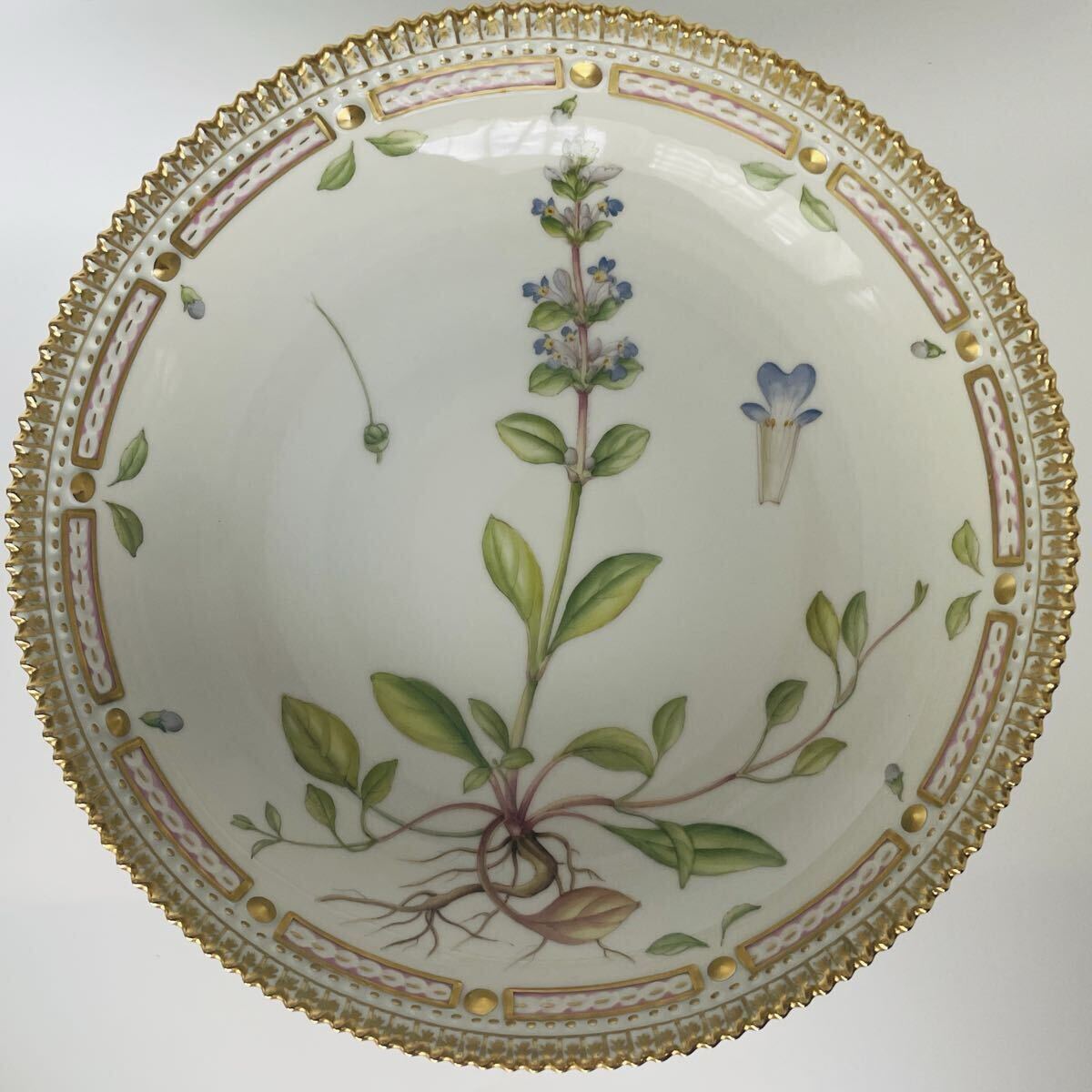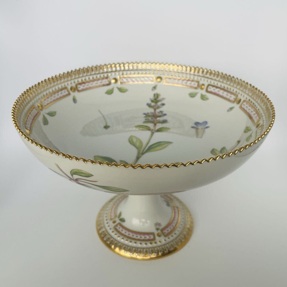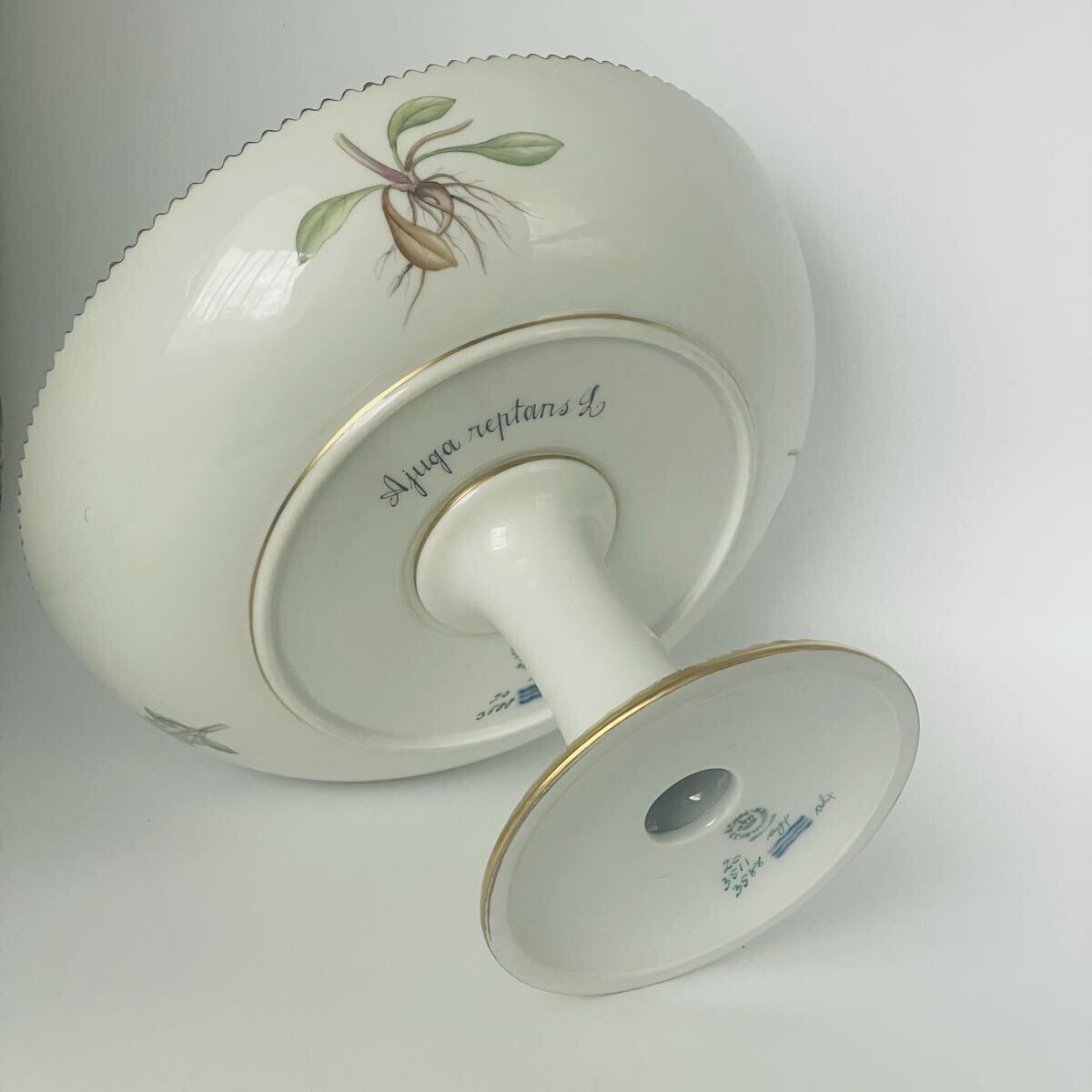 【未使用・超美品・長期保管・外商購入】ロイヤルコペンハーゲン フローラダニカ 円形コンポート Ajuga reptans 希少 箱付き Copenhagen 收藏