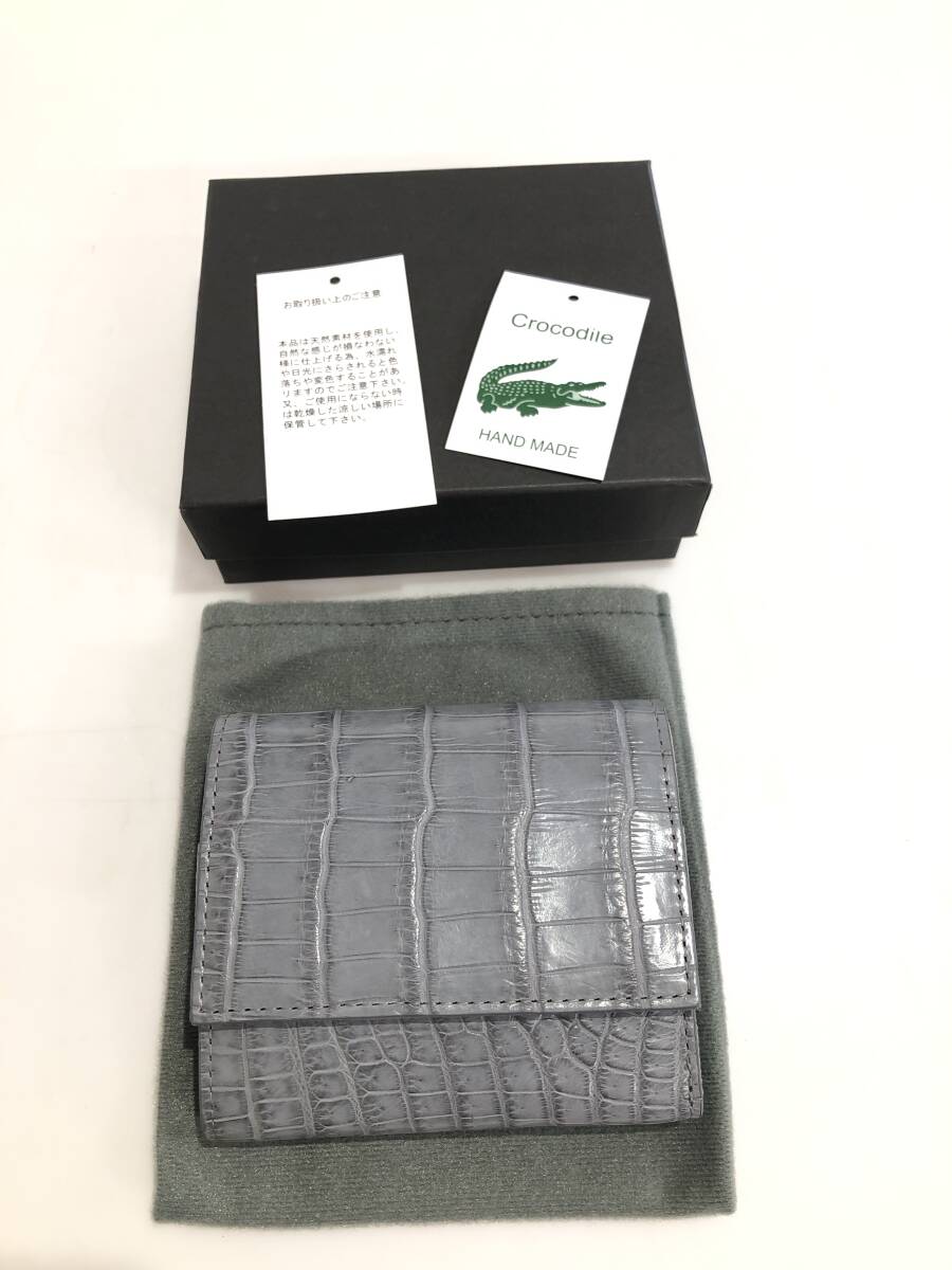 商品名 | クロコダイル 財布 小銭入 カード入 ワニ革 三つ折り財布 レザー 箱付き 未使用品 |