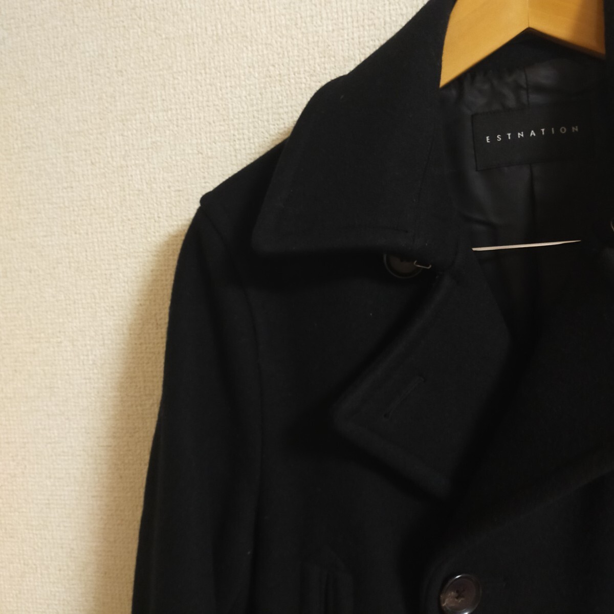 ESTNATION エストネーション カシミア混 メルトン ウール Pコート ハーフコート M ブラック(黒) 收藏