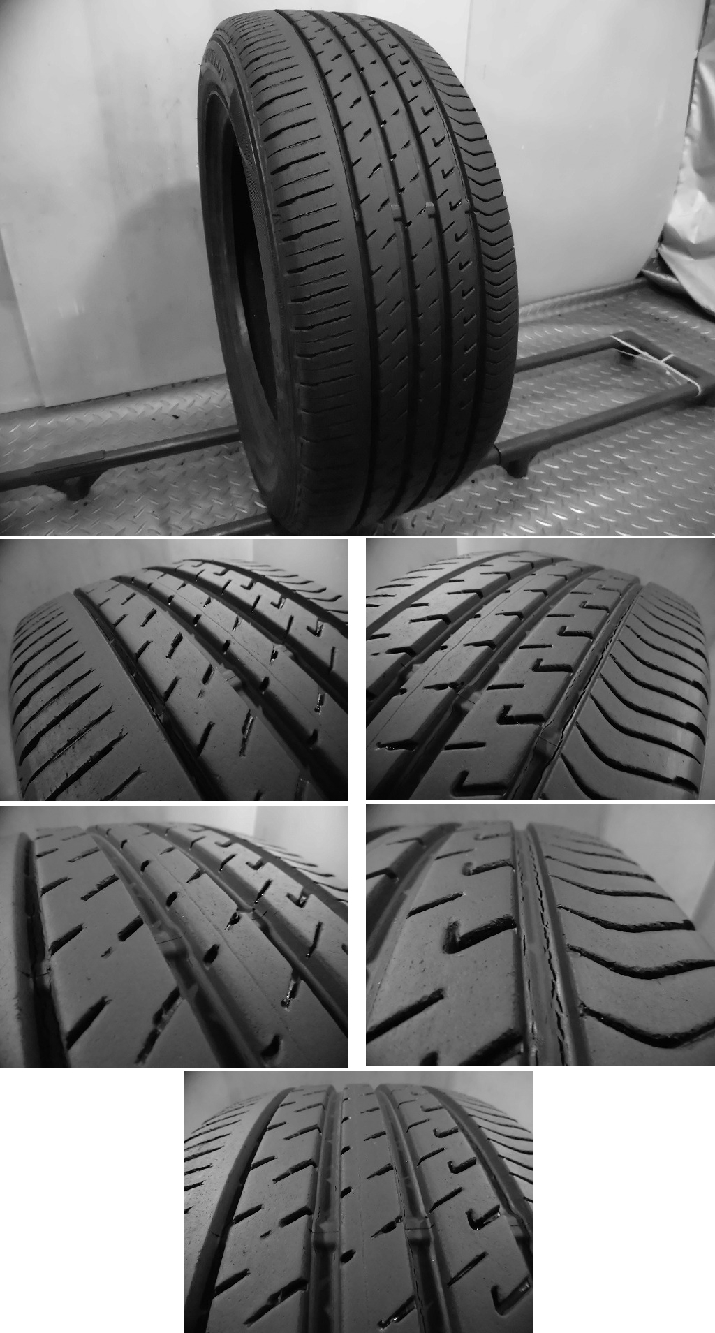 | ■状態: | 中古タイヤ特有のヒビがトレッドの溝に出てきています。 |