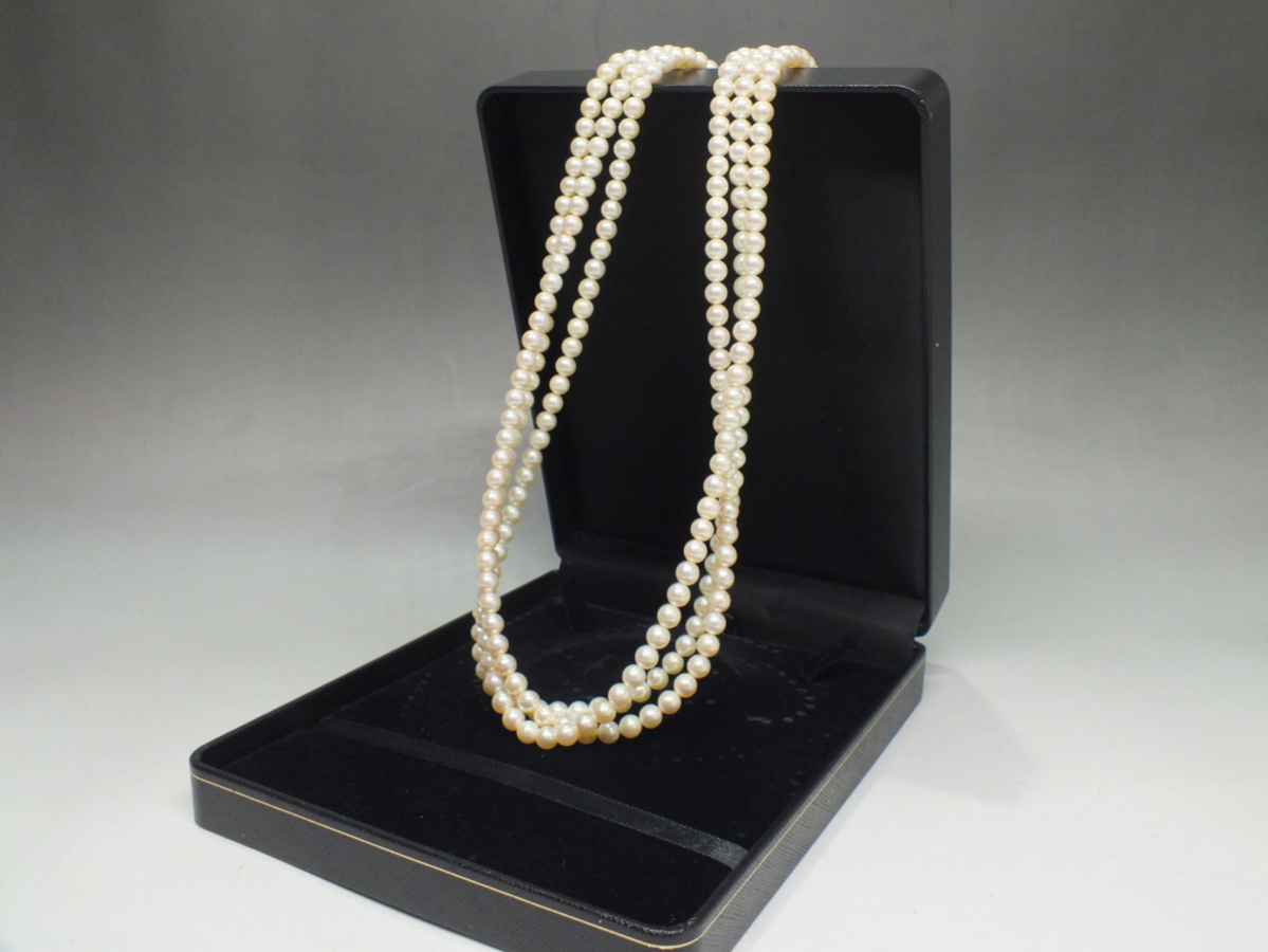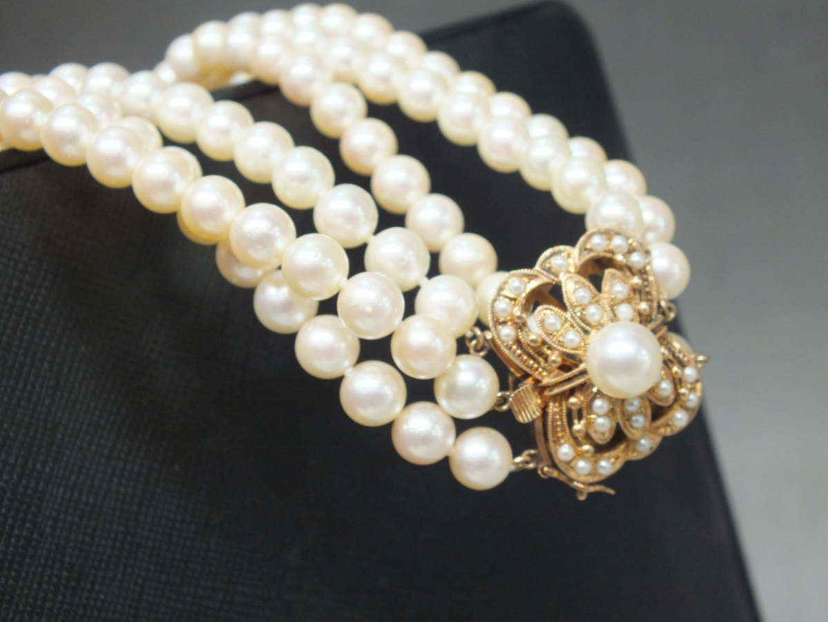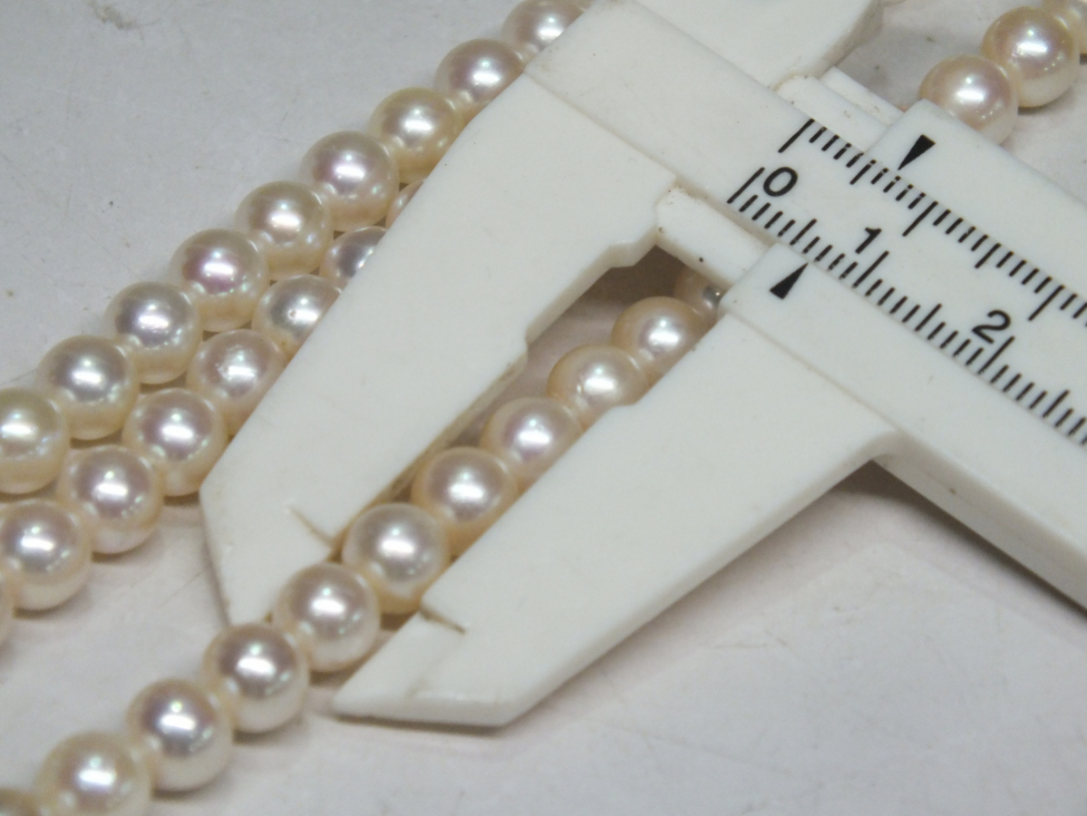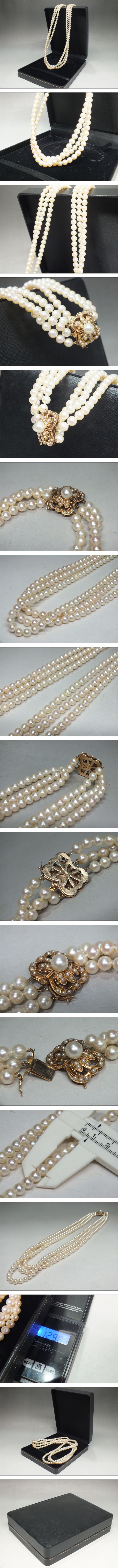 最高級品 本真珠 パール3連ネックレス 最高の照り 留具K14刻印 約6~7㎜玉 重量129.8g 首回り約64㎝ 資産家放出品 | |||