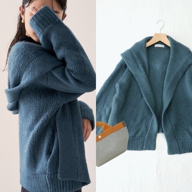 【送料無料】美品*1.6万 Audrey and John Wad|くすみブルー♪フード ニットカーディガン( オードリーアンドジョンワッド) 收藏