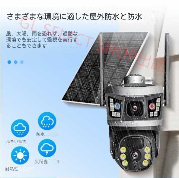 防犯カメラ 屋外 ソーラー 二画面 無線 wifi 電源不要 工事不要 ネットワークカメラ 家庭用 AI人感検知 夜間カラー 遠隔監視機能(A162) 收藏