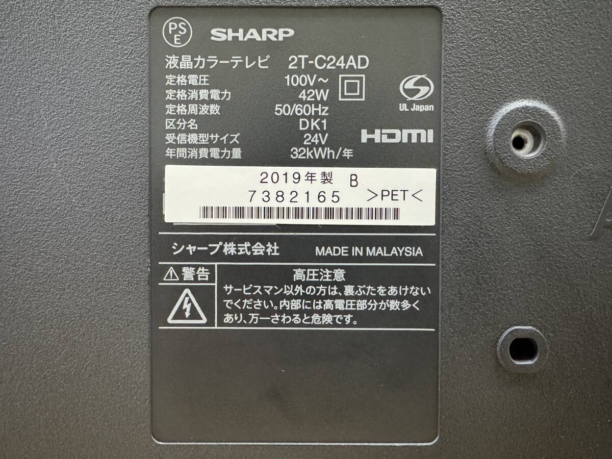 24型 シャープ AQUOS  LED 液晶テレビ 2019年製 2T-C24AD Wチューナー搭載 裏番組録画可能 管理F1771