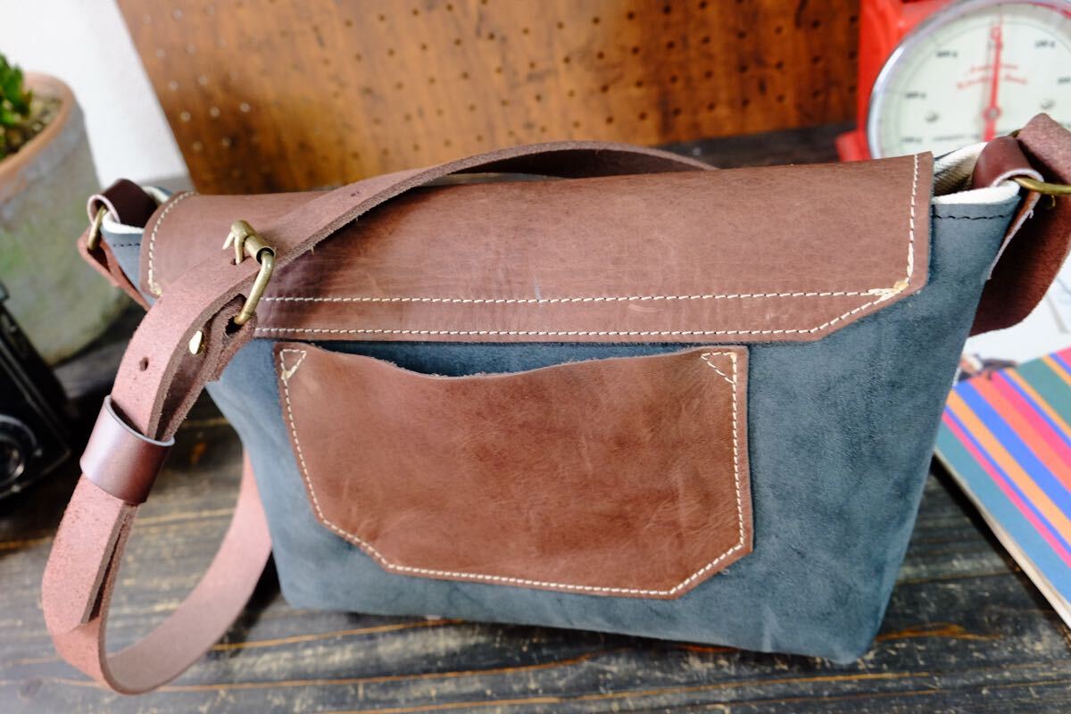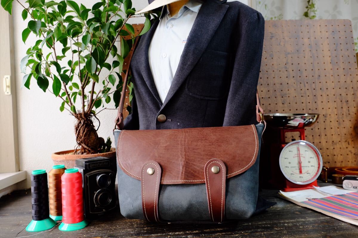 イタリア産◇馬ヌメ革とブッテロバックスキンレザーショルダーバッグ ◇職人手作り◇牛革日本製帆布鞄ハンドメイドブラウングレイ 收藏