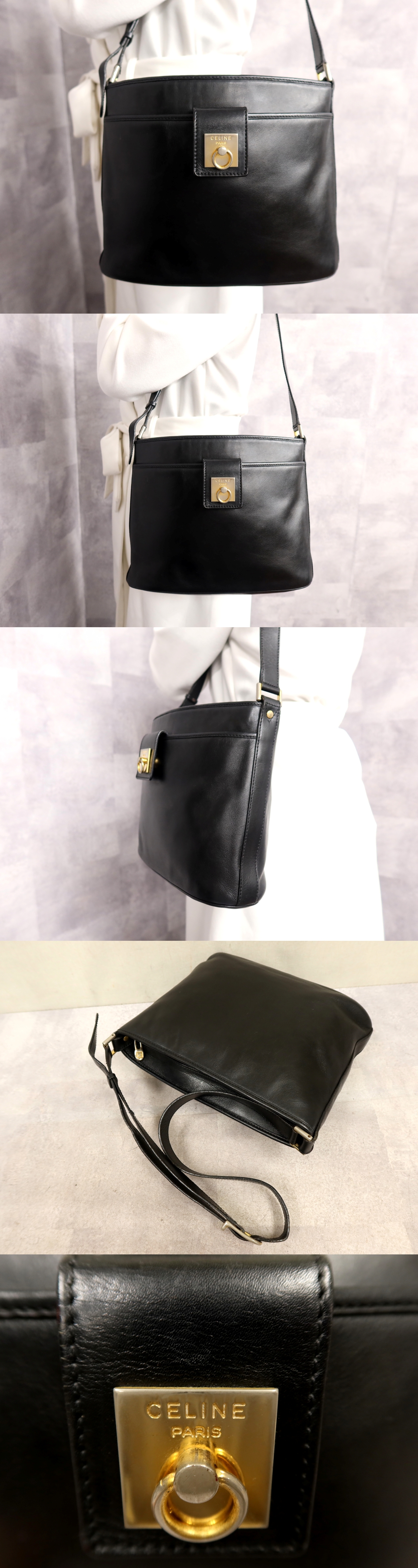●超美品●CELINE セリーヌ●ガンチーニ●カーフ レザー 本革●ショルダー バッグ●黒●ゴールド金具●ヴィンテージ●収納 かばん●Js62389 收藏