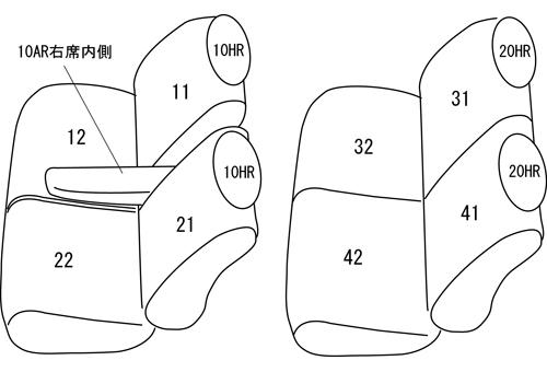 | 適合形状 | コラムシフト車 / 1列目、2列目枕型ヘッドレスト 2列目背もたれ背面に可倒式(背もたれを前に倒す)レバー有り / 2列目シートスライドしない ※助手席シートバックトレー、カバーで覆われます |