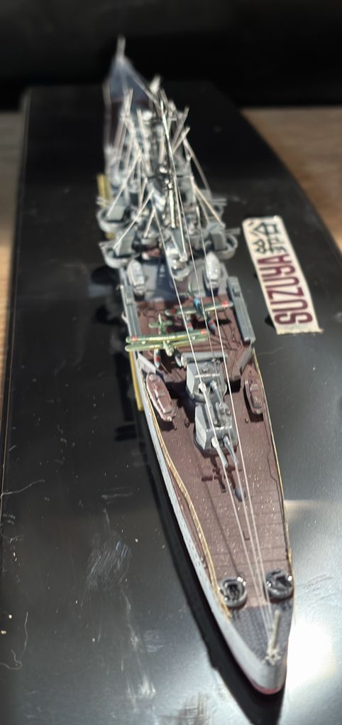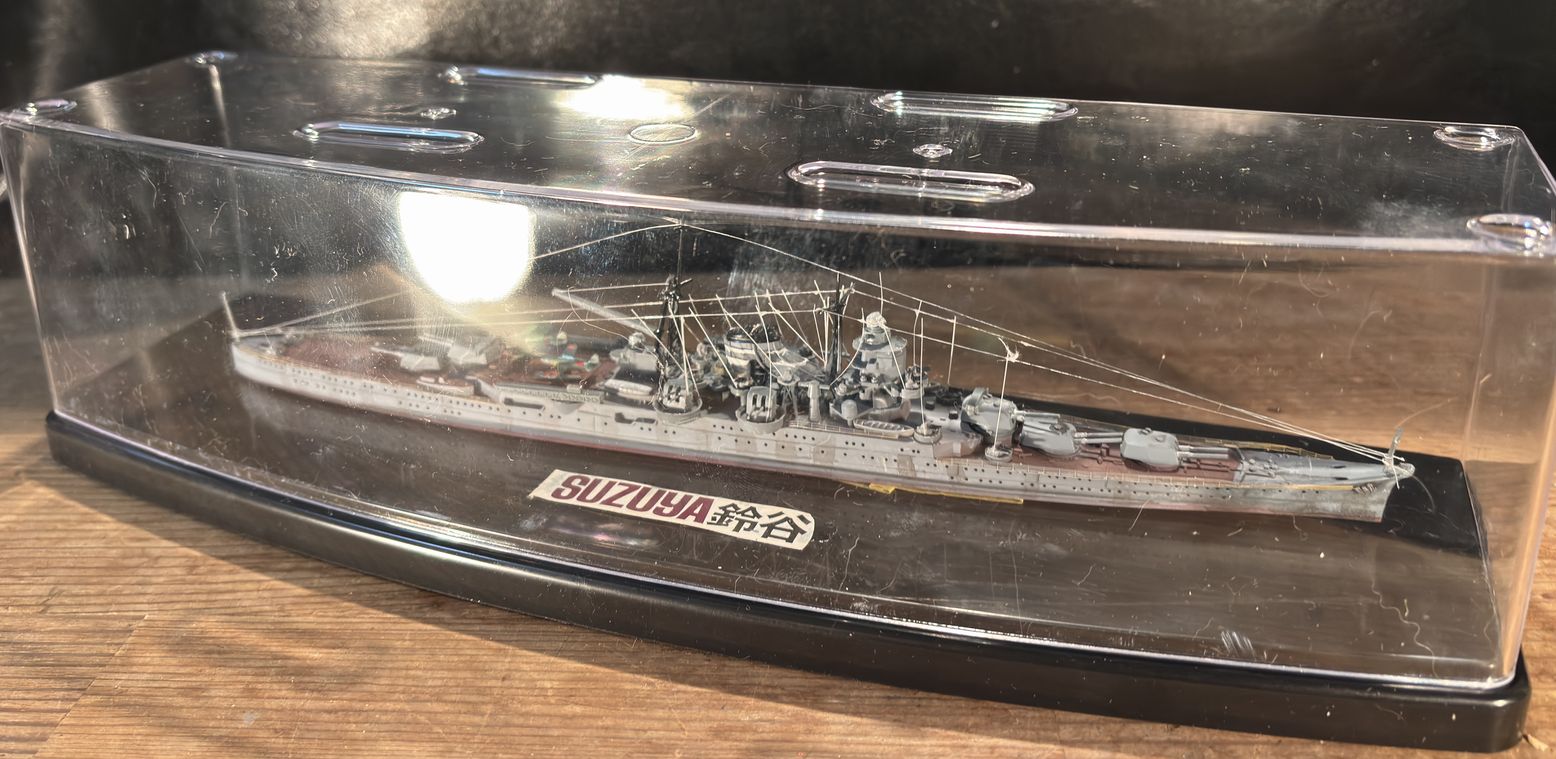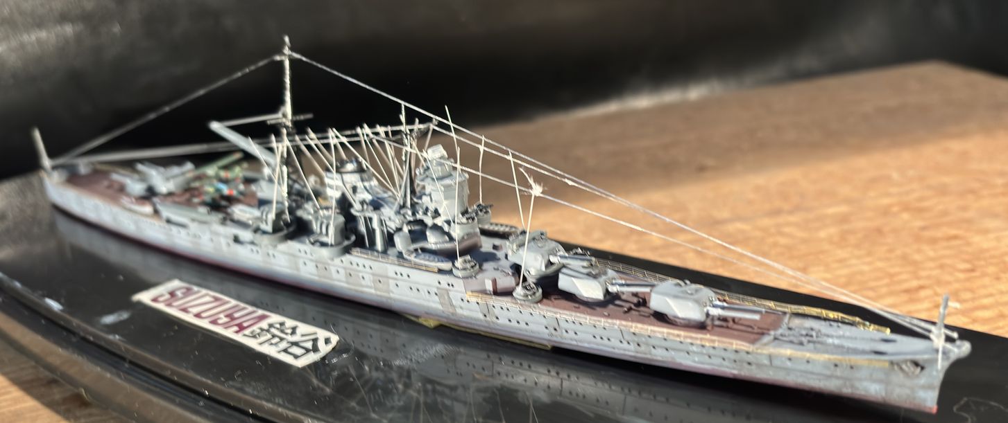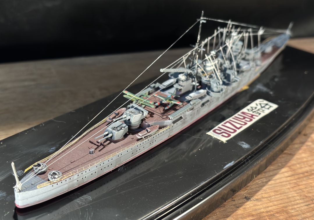 最上型の三番艦鈴谷、昭和8年機工氏9年には就航しています。インド洋での作戦に従事しガダルカナル、ソロモン、そしてレイテの決戦に参加し昭和19年10月25日の米機動部隊の爆撃で火災をおこし沖波、雪風に生存者を救助され死者90名、行方不明者564名を出し沈没しています。