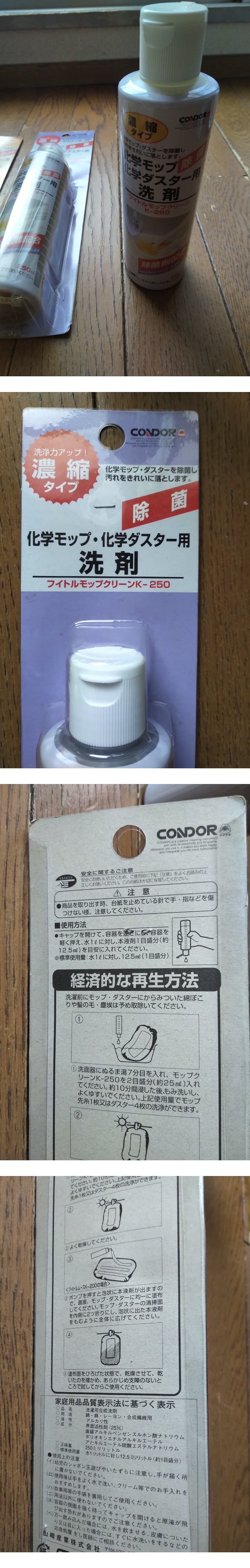 山崎産業 CONDOR 化学モップ・化学ダスター用 再生液 K-200 ×4と洗剤 K-250×2 計6本まとめて 【未使用品】 收藏