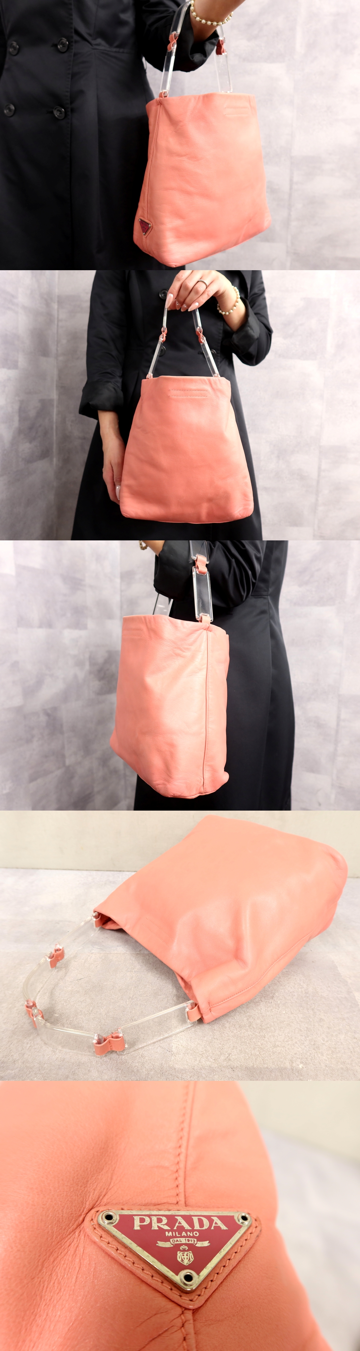 ●超美品●PRADA プラダ●三角ロゴプレート●プラスチックチェーン●ナッパ レザー 本革●ハンド バッグ●フラミンゴピンク●収納●Js65143 收藏