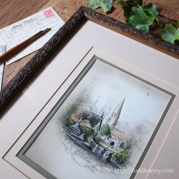 【ブロードウェルの教会の日常】イギリス ヴィンテージ アートフレーム オリジナル 絵画 木額縁◆Vintage Painting with Oak Caving Frame 收藏
