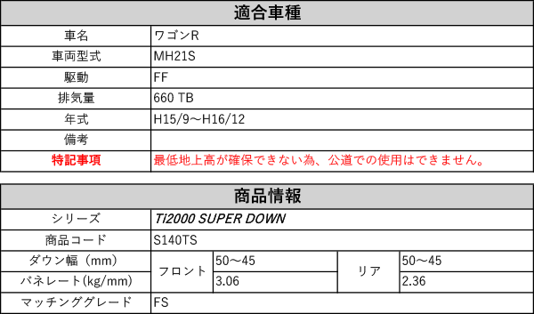 [RS-R_Ti2000 SUPER DOWN]MH21S ワゴンR_FS(2WD_660 TB_H15/9~H16/12)用競技専用ダウンサス[S140TS] 收藏