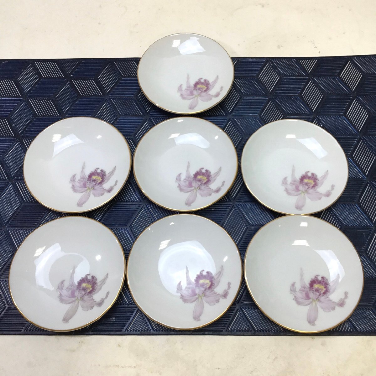 | カトレア柄7枚 直径:約10.5cm   高さ:約1.5cm  (金彩の剥がれあります) ユリ柄4枚 直径:約11.5cm 高さ:約2cm (綺麗めです) ・画像が全てです。 ※付属品欄に記載されていないものは、原則付属致しません。」 |