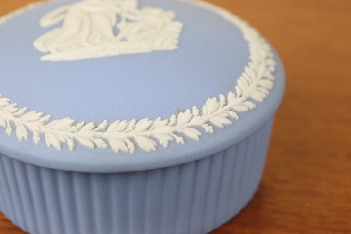 ウェッジウッド ジャスパー 小物入れ フルーテッドボックス ラウンドボックス ペールブルー イギリス ヴィンテージ く180-1 收藏