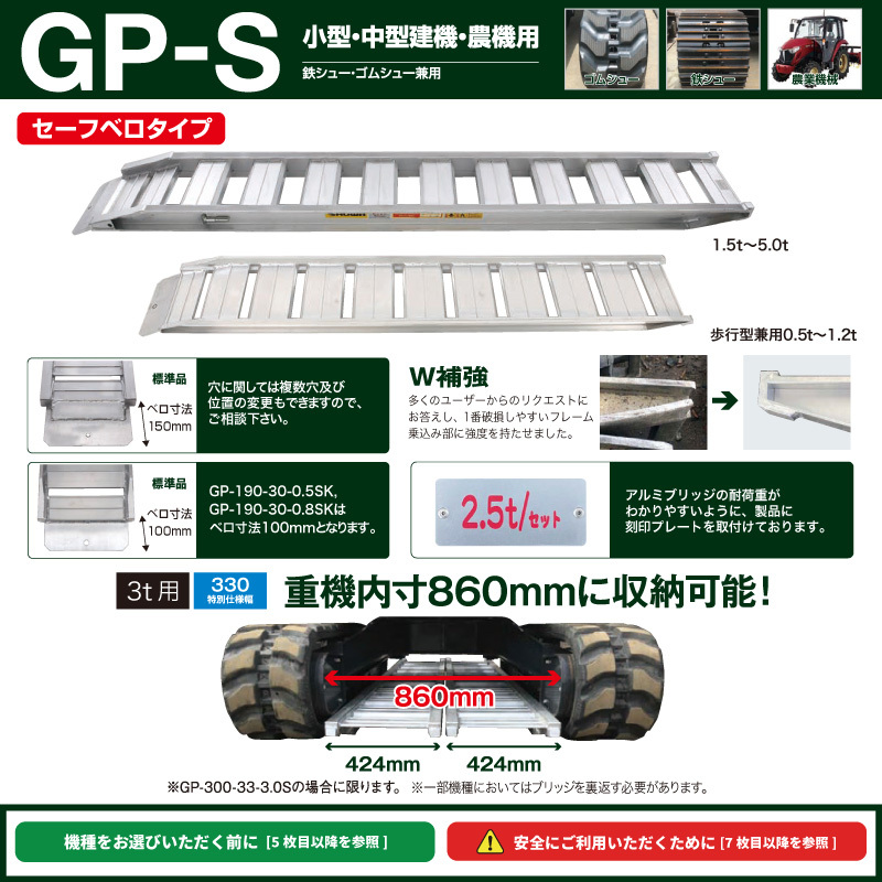 昭和アルミブリッジ・GP-255-30-0.5SK(ベロ式)0.5トン/2本組 ◎積載0.5t/セット【全長2550・有効幅300(mm)】アルミラダーレール 道板 收藏