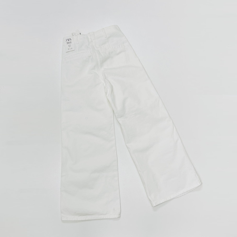 ZARA /32/ ホワイト ワイドデニムパンツ ゴールドボタン レディース タグ付き カジュアルボトム通勤フェミニン ジーンズ 生地コットン ザラ 收藏