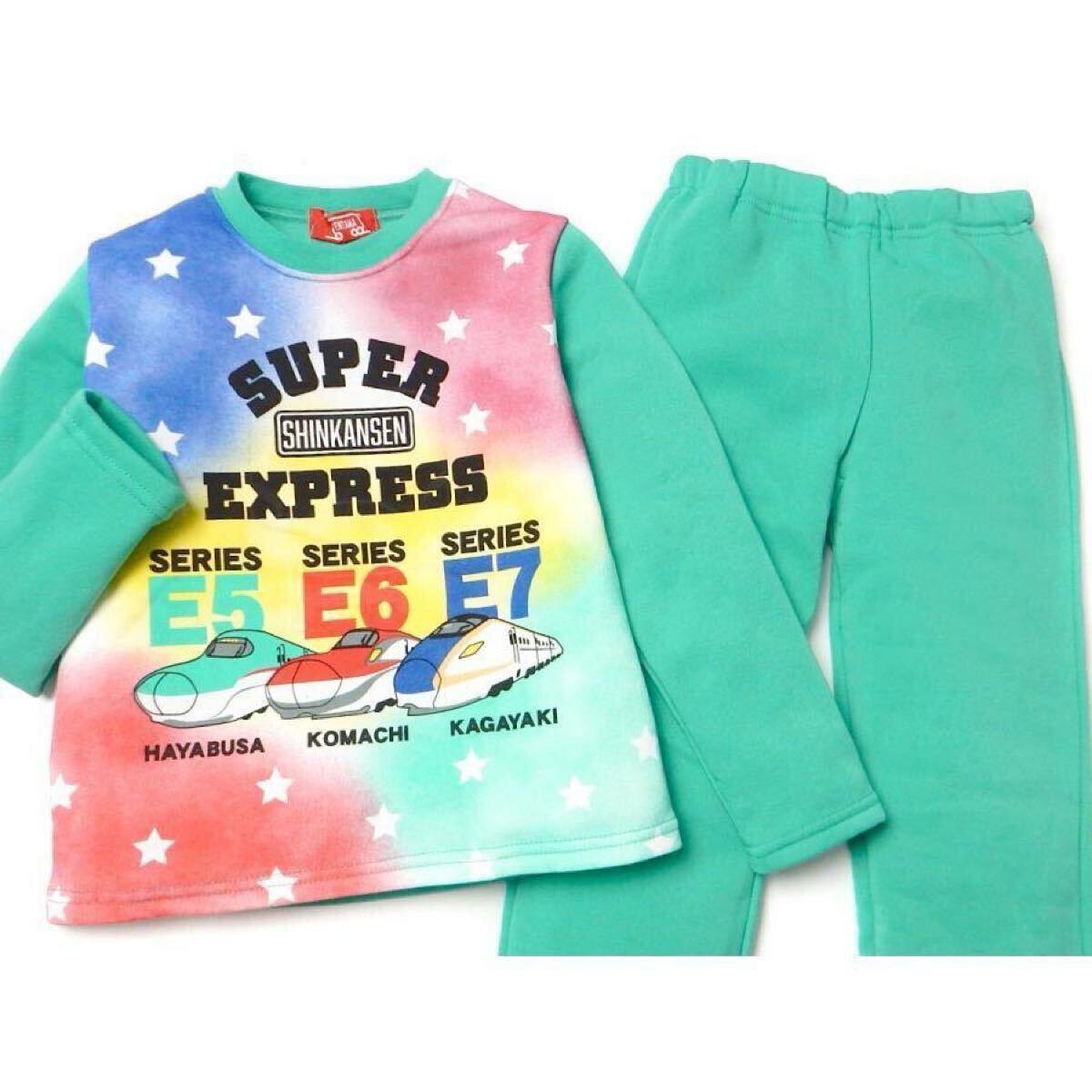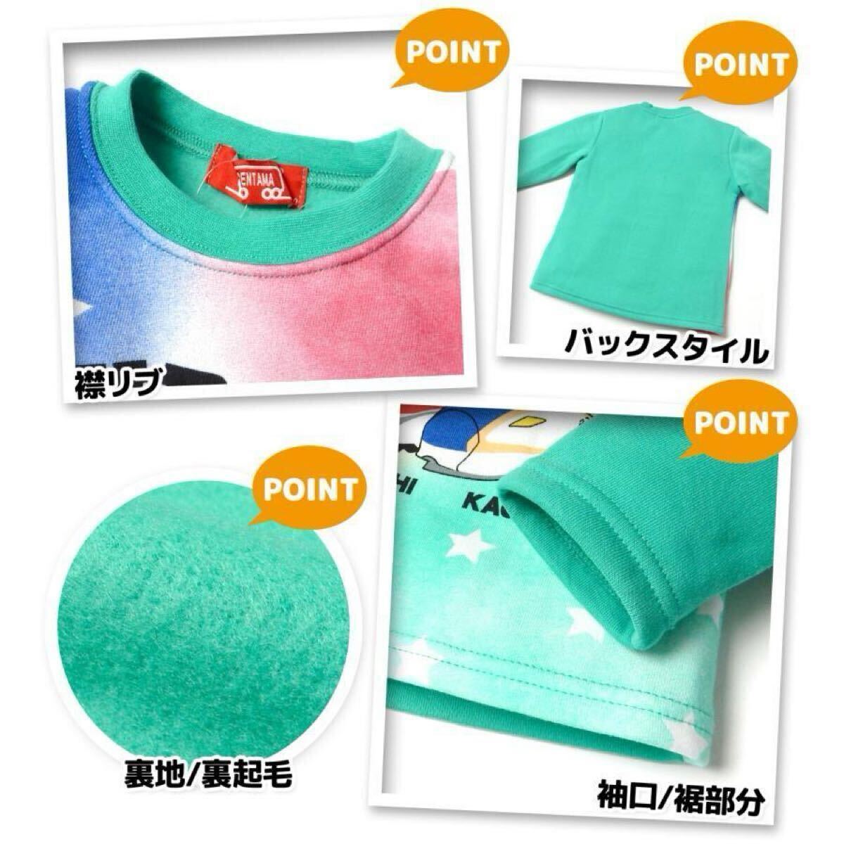 新品63560 でんたま 新幹線 120cm グリーン ボーイズ蓄光長袖裏起毛パジャマ光るパジャマ かぶり裏シャギーパジャマ秋冬ルームウエア男子 收藏