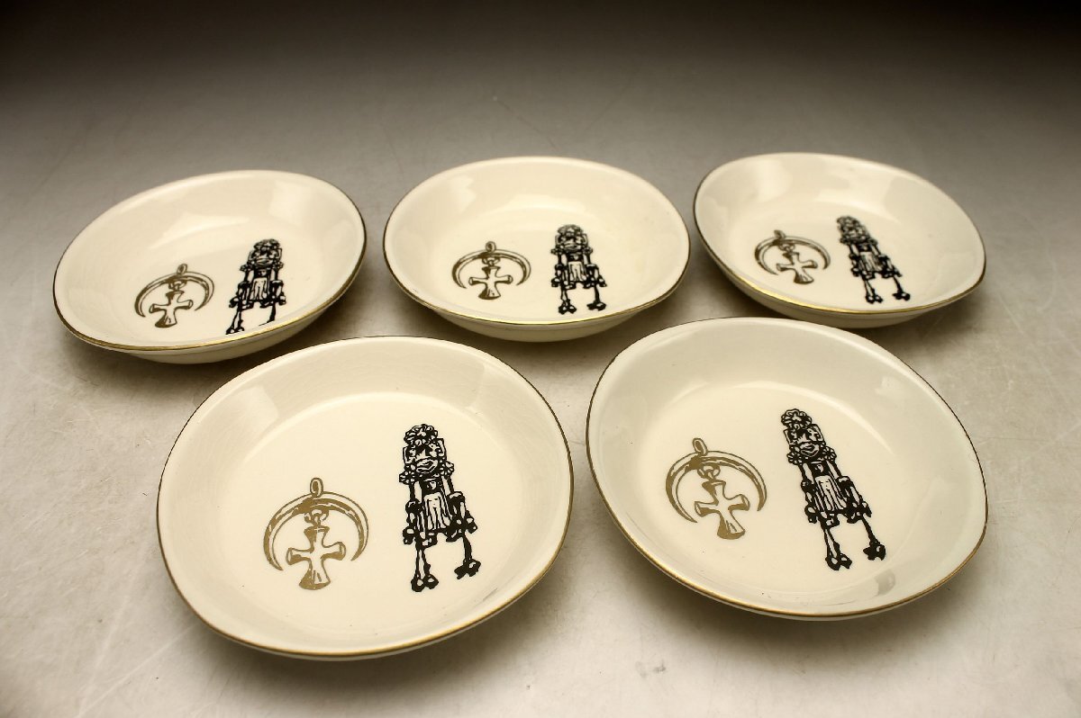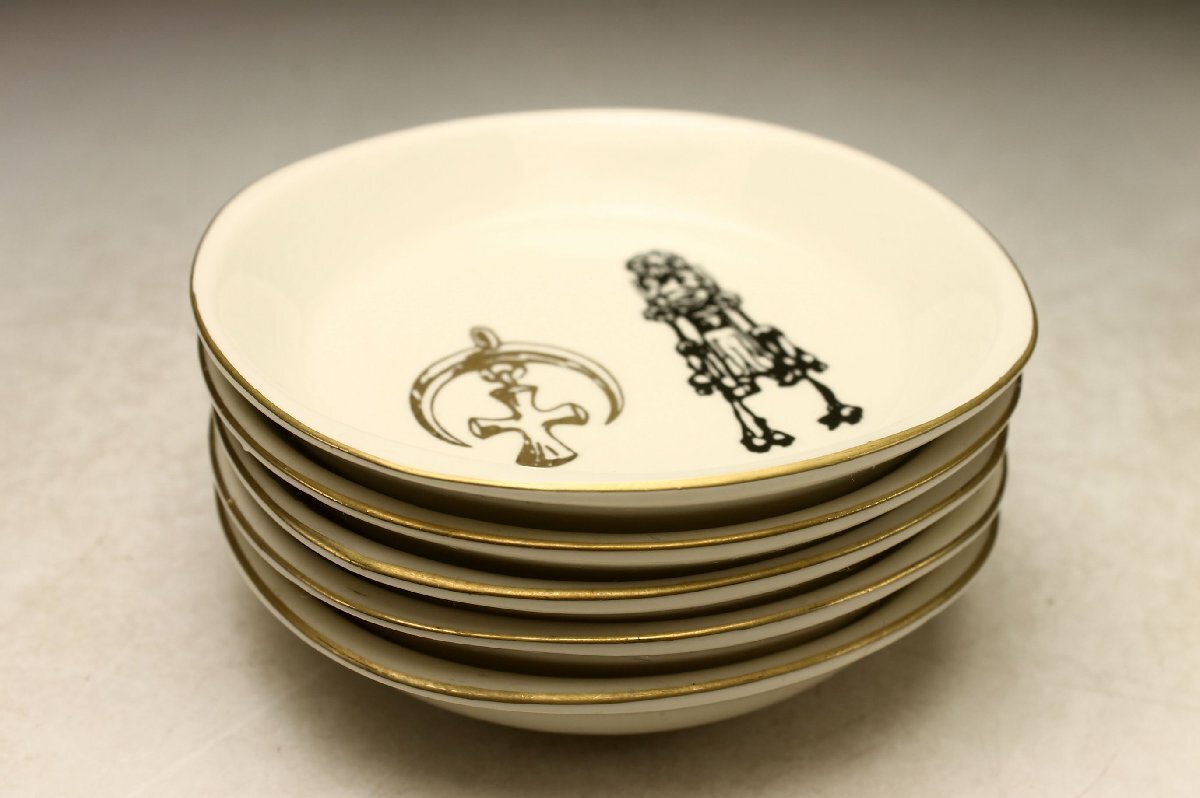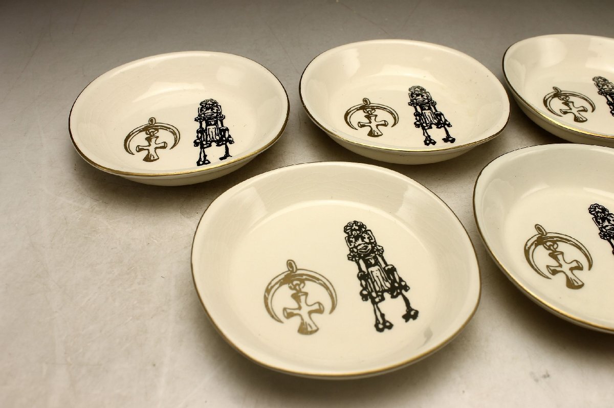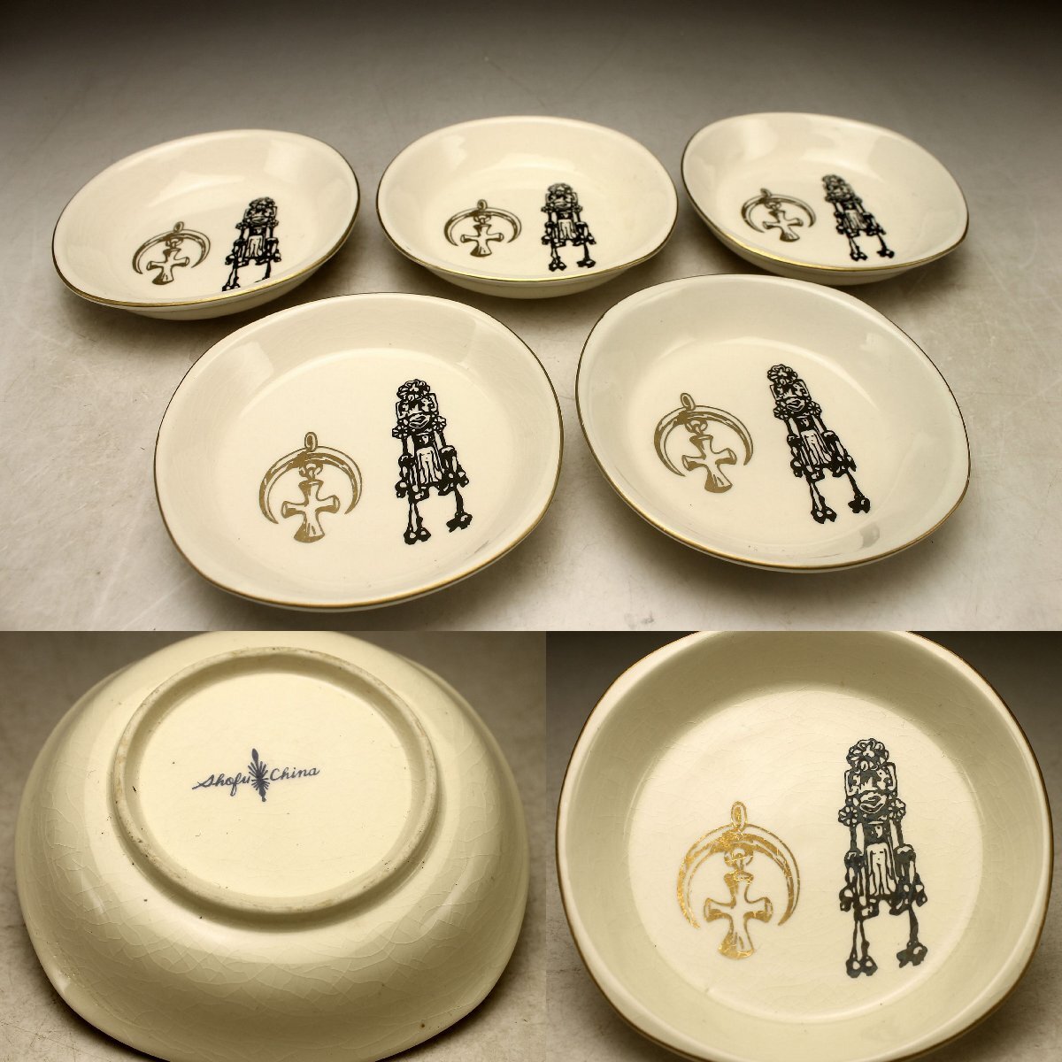 【余韻】 松風陶器 手描き 銘々皿揃(5枚)★裏印(SHOFU CHINA ) 無傷美品 茶道具<同梱可> 收藏
