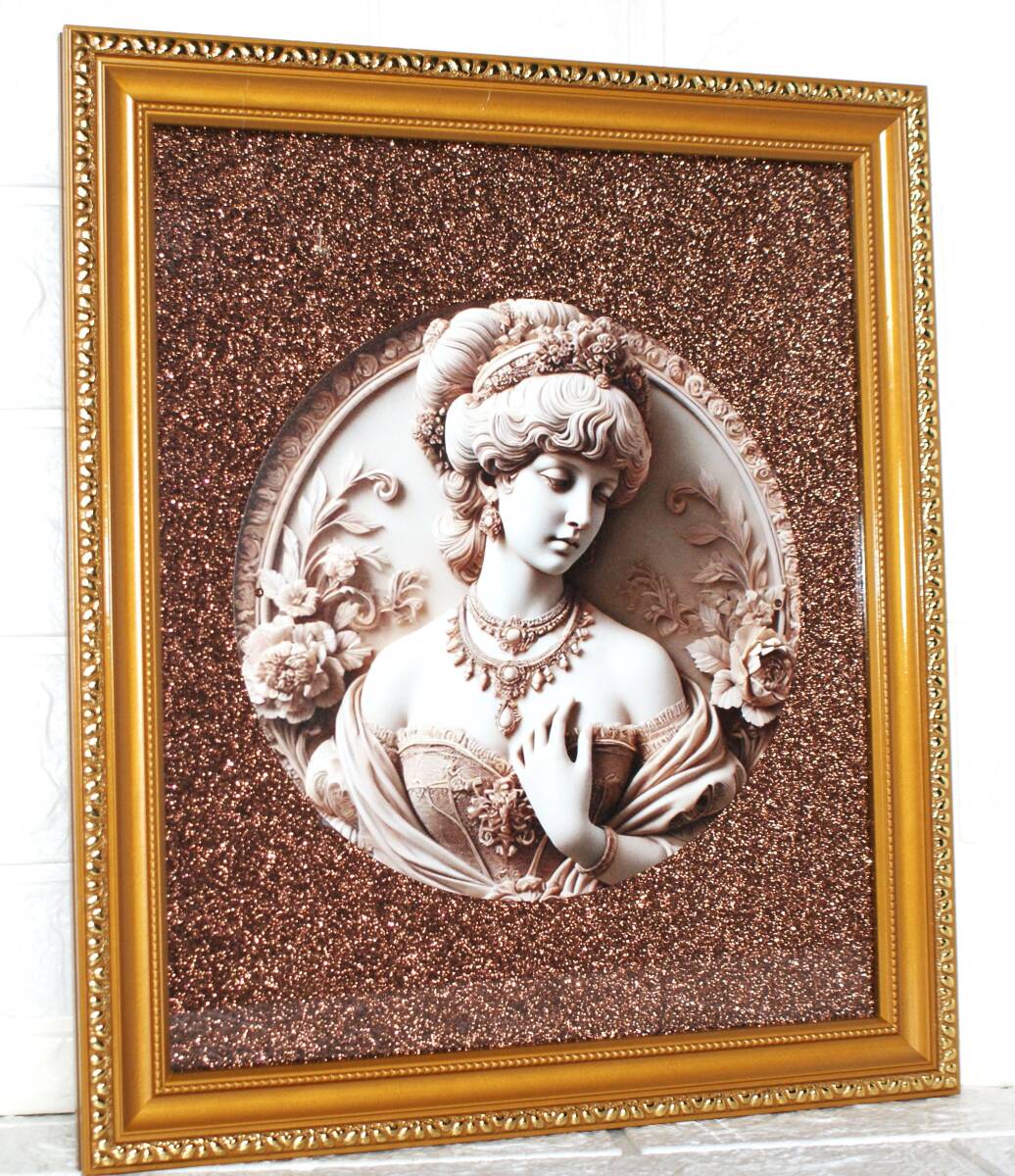 立体描法・アルミ絵画印刷を陶板風に額装しました・ヴィクトリア朝の装い・貴婦人・その2・金縁額にグリッター壁紙で製作・とても綺麗です 收藏