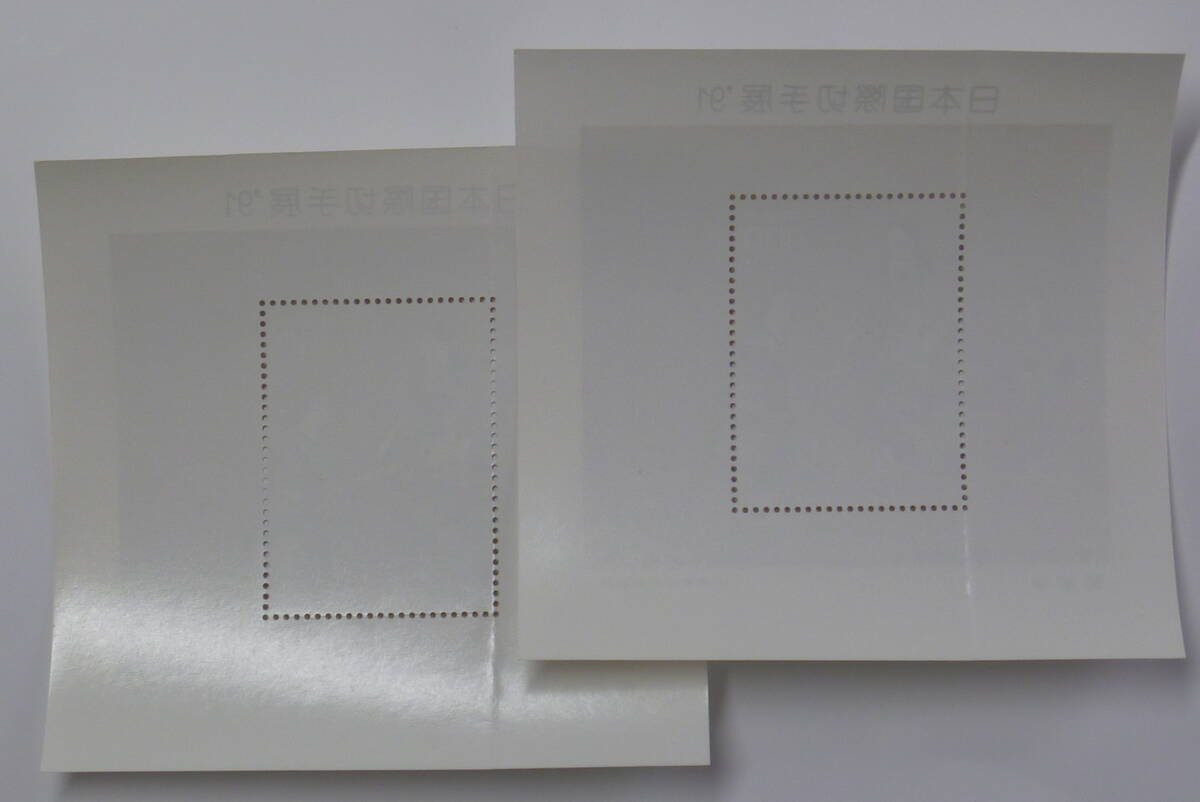 【日本国際切手展’91】100円記念切手シート×2枚組、未使用、送料〒85円です。