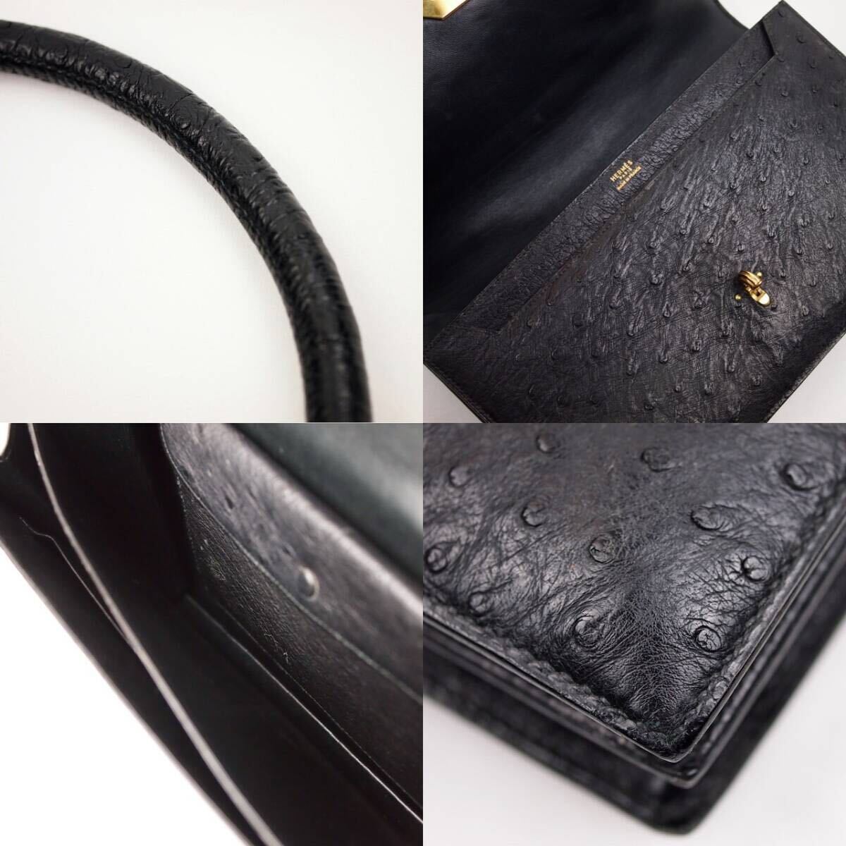 【B450】HERMES ヴィンテージ 1974年 エルメス コルドリエール オーストリッチ ハンドバッグ 收藏