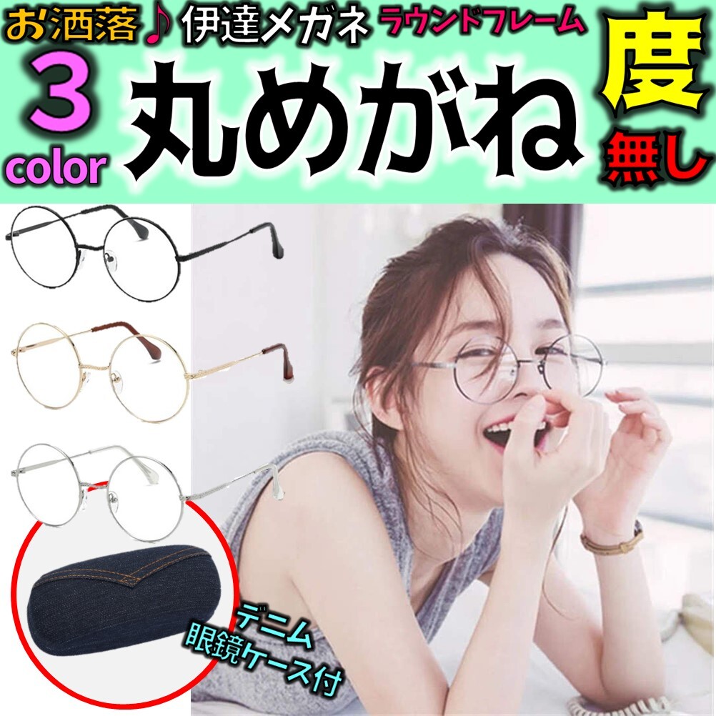 【シルバー】度無し 丸メガネ 伊達めがね 丸眼鏡 お洒落デザイン デニム眼鏡ケース付き おしゃれ ファッション レディース メンズ 收藏