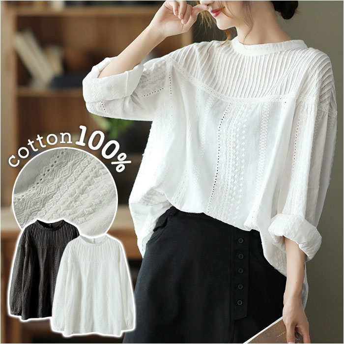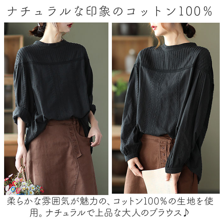 | 商品説明 | ・・コットン100%のナチュラルさが魅力。レディースブラウスが登場♪ ・【ナチュラルな印象のコットン100%】 ・柔らかな雰囲気が魅力の、コットン100%の生地を使用。ナチュラルで上品な大人のブラウス♪ ・【繊細な刺繍がこだわりポイント☆】 ・シンプルなのにちゃんと存在感のあるこだわりの刺繍デザイン。繊細な表情を魅せてくれる。 ・【着回し力が抜群!毎日着られる】 ・オフィス、お出かけ、レジャーもOKな、確かな着回し力◎ベーシックカラーで使いやすい。 ・【後ろ姿もばっちり可愛くキマる】 ・前後でデザインが変わり、後ろ姿もばっちり可愛い☆ピンタックがさり気ないアクセント。 ・【ロングシーズン使える長袖タイプ】 ・薄めの長袖なので、季節の変わり目から冷房の冷えが気になる夏場にも使える! ・【レイヤードスタイルにも◎】 ・シンプルで合わせやすいので、レイヤードスタイルでも活躍。技ありデザインで垢抜け☆ |