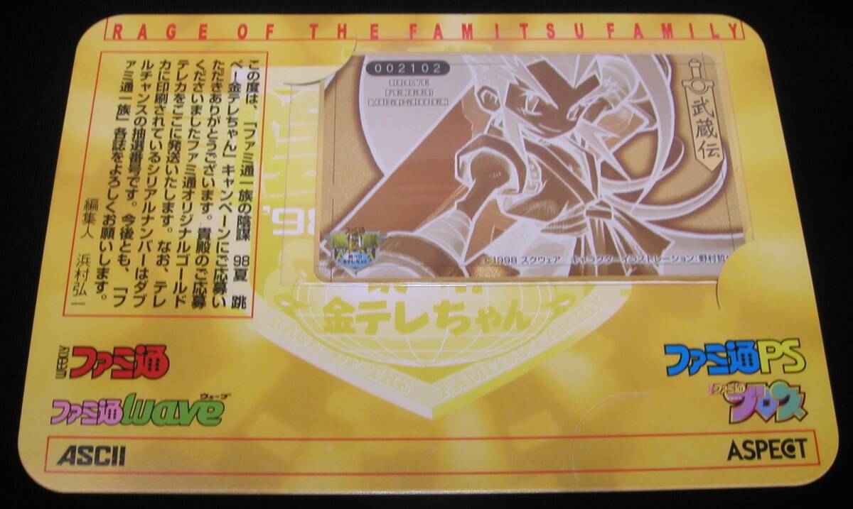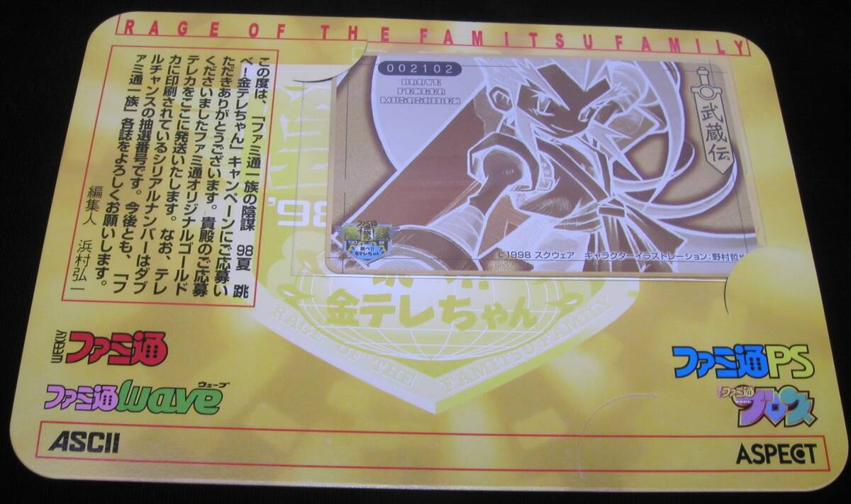 テレカ 台紙付き ブレイヴフェンサー 武蔵伝 ファミ通一族の陰謀 98夏 Brave Fencer Musashi スクウェア SQUARE 野村哲也 テレホンカード 收藏