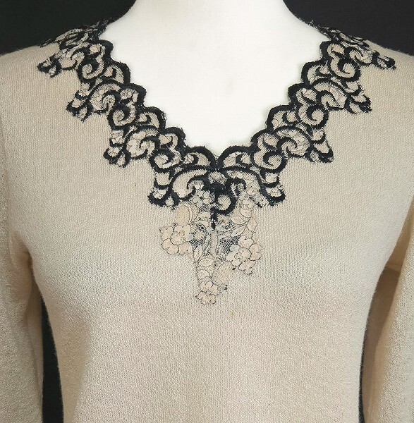 #wnc インポートロッサ import Rossa ニット セーター 42 ベージュ 黒 レース Vネック 薄手 大きいサイズ レディース [950444] 收藏