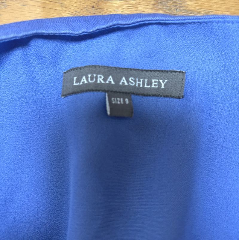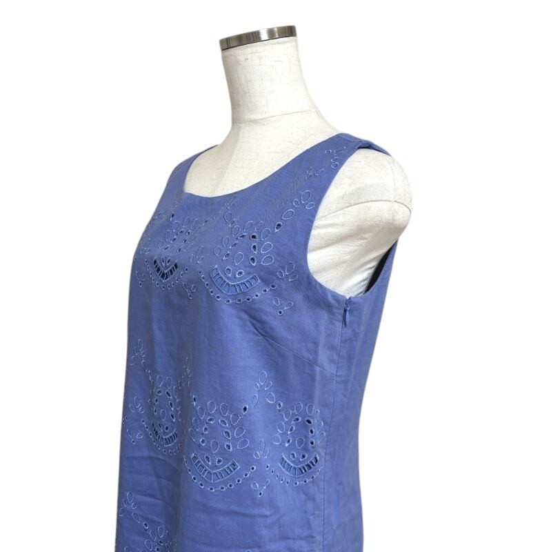 ローラアシュレイ レディース リネンワンピース ノースリーブ 膝丈 ブルー 青 カットワークレース刺繍 9号 收藏