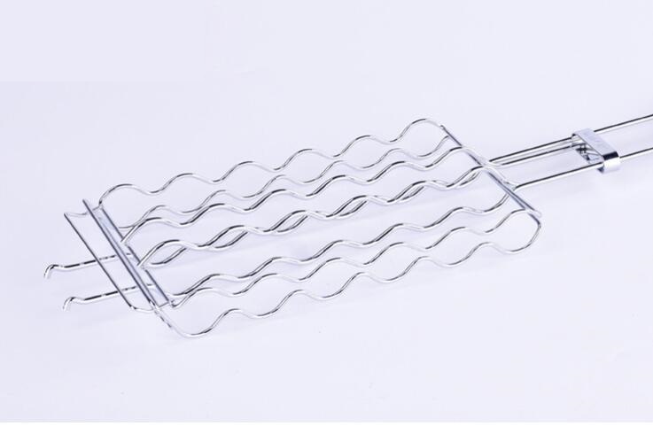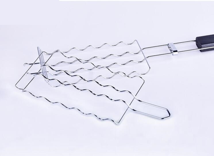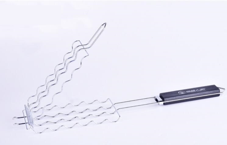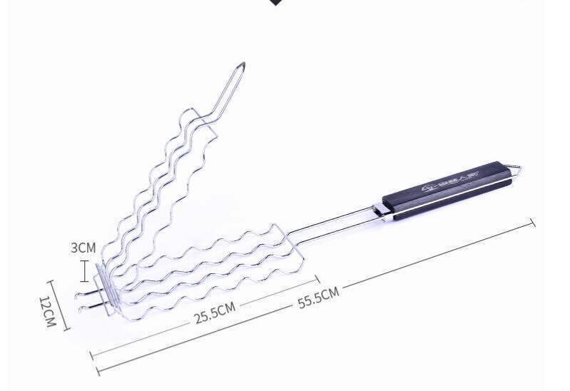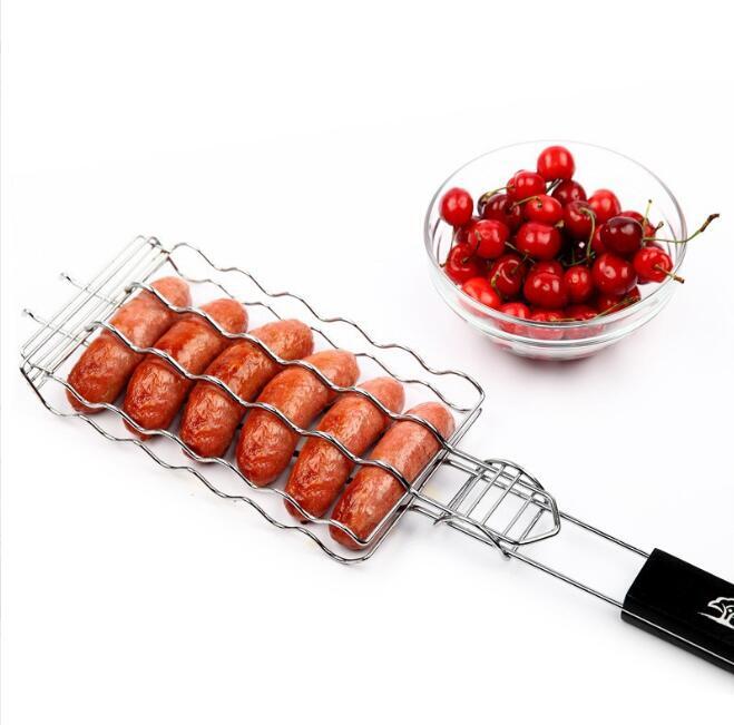 人気 新品落下防止に ソーセージ バーベキューツール グリル ホットドッグ 木製ハンドル コンパクト 調理グッズ 網入らず 金属 メッシュ 收藏