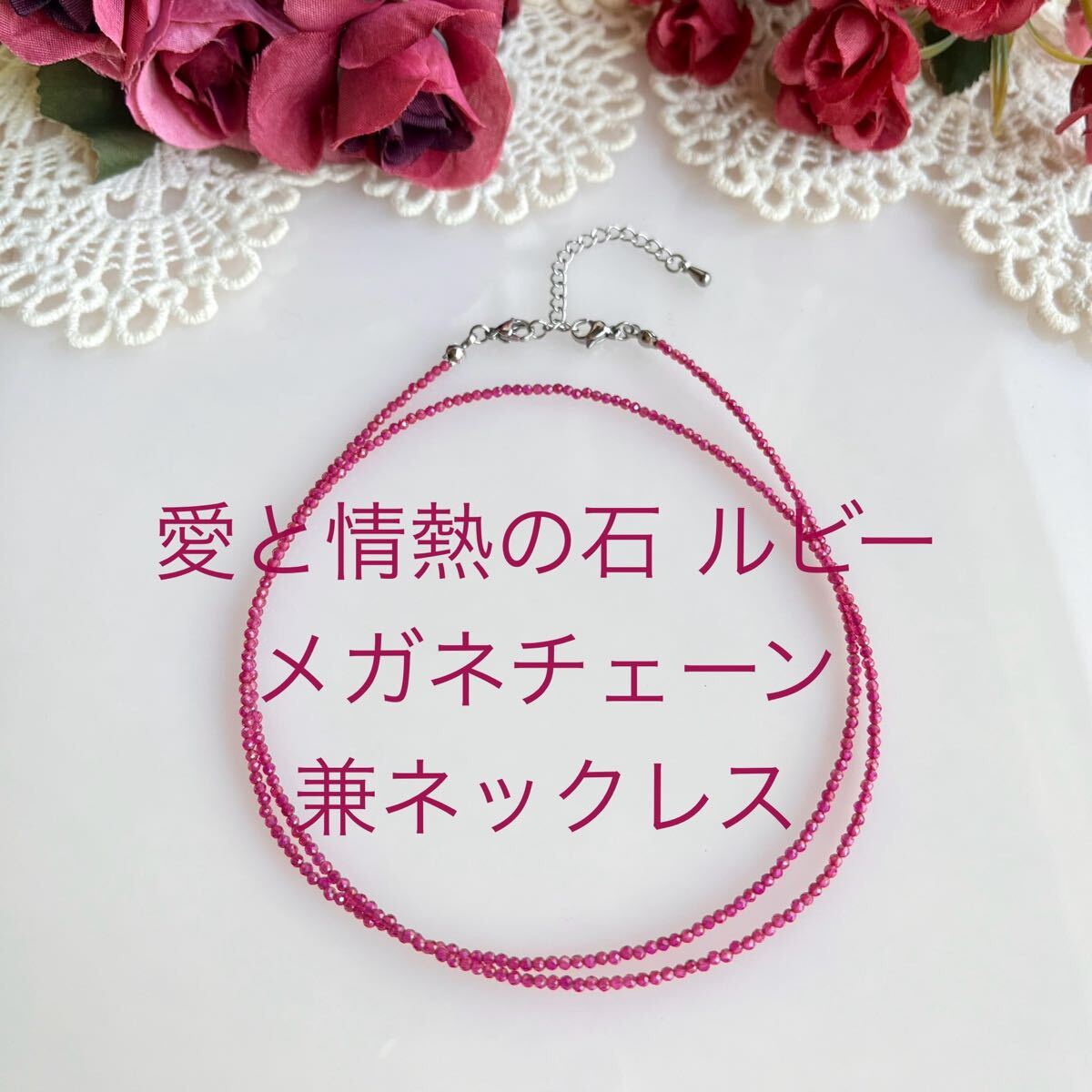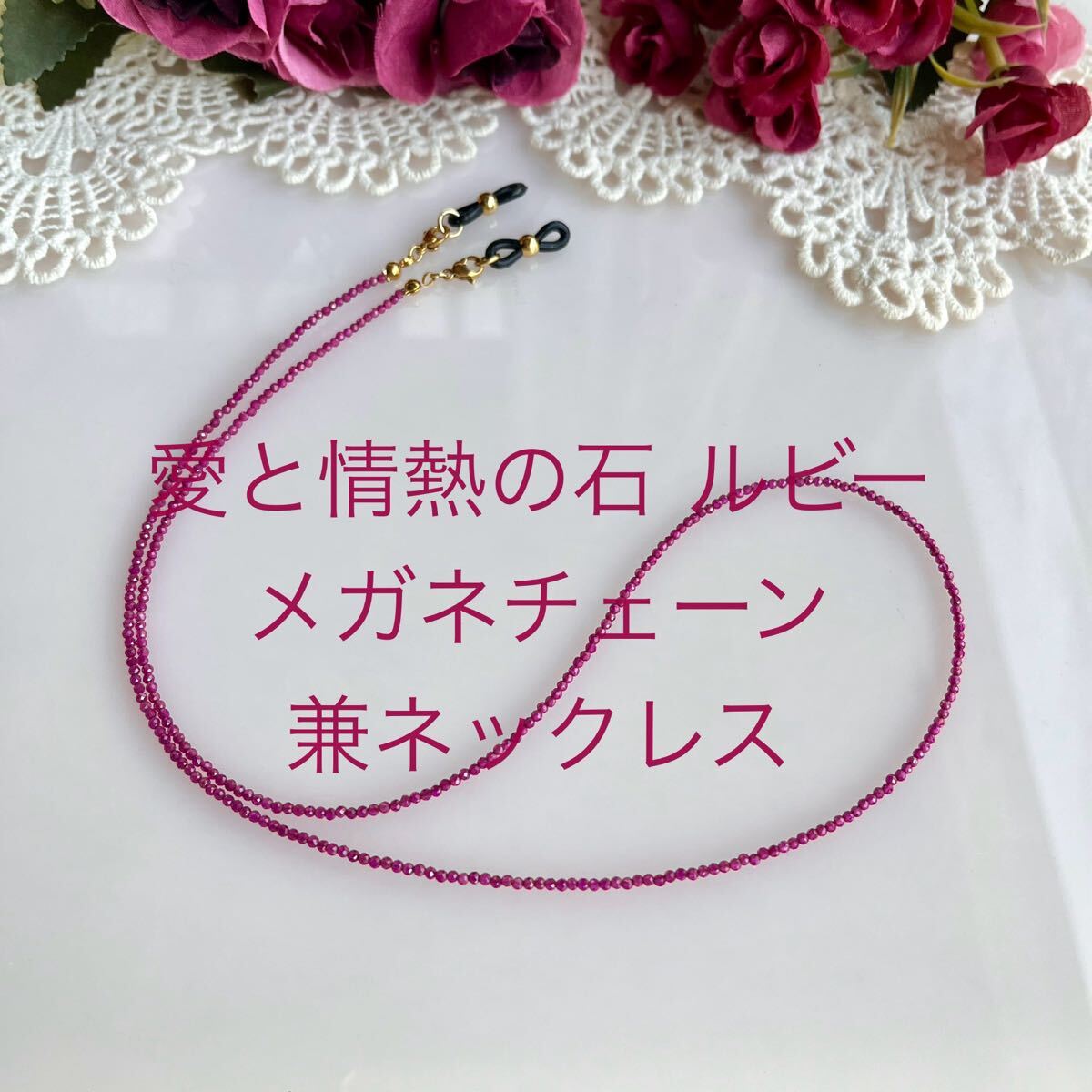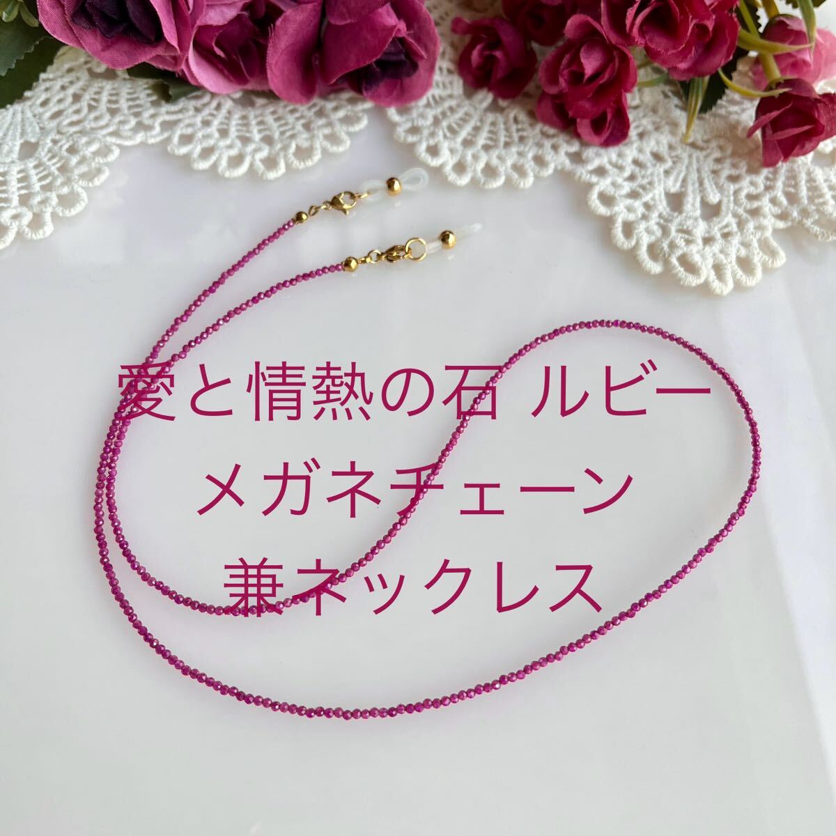 愛と情熱の石 天然ルビー メガネチェーン兼ネックレス アクセサリー 発展繁栄豊穣のユニバースエネルギー封入 收藏